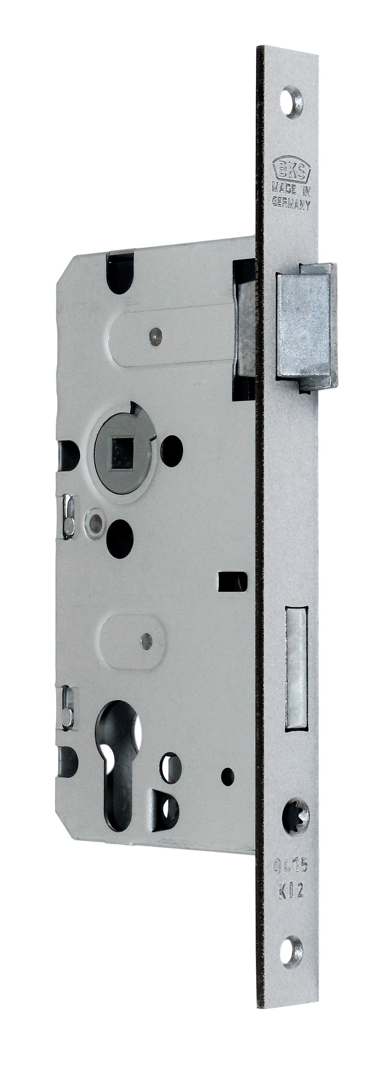 Die keilförmige Falle aus Zinkdruckguss hält die Tür im Schließblech, nachdem diese ins Schloss gefallen ist. Die Falle wird über eine Feder aus dem Schloss raus gedrückt. Zum öffnen der Tür wird die Falle über die Schlossnuss mit dem Türdrücker zurück gezogen. Der Riegel aus Zinkdruckguss verriegelt die Tür und wird mit dem Profilzylinder bedient.