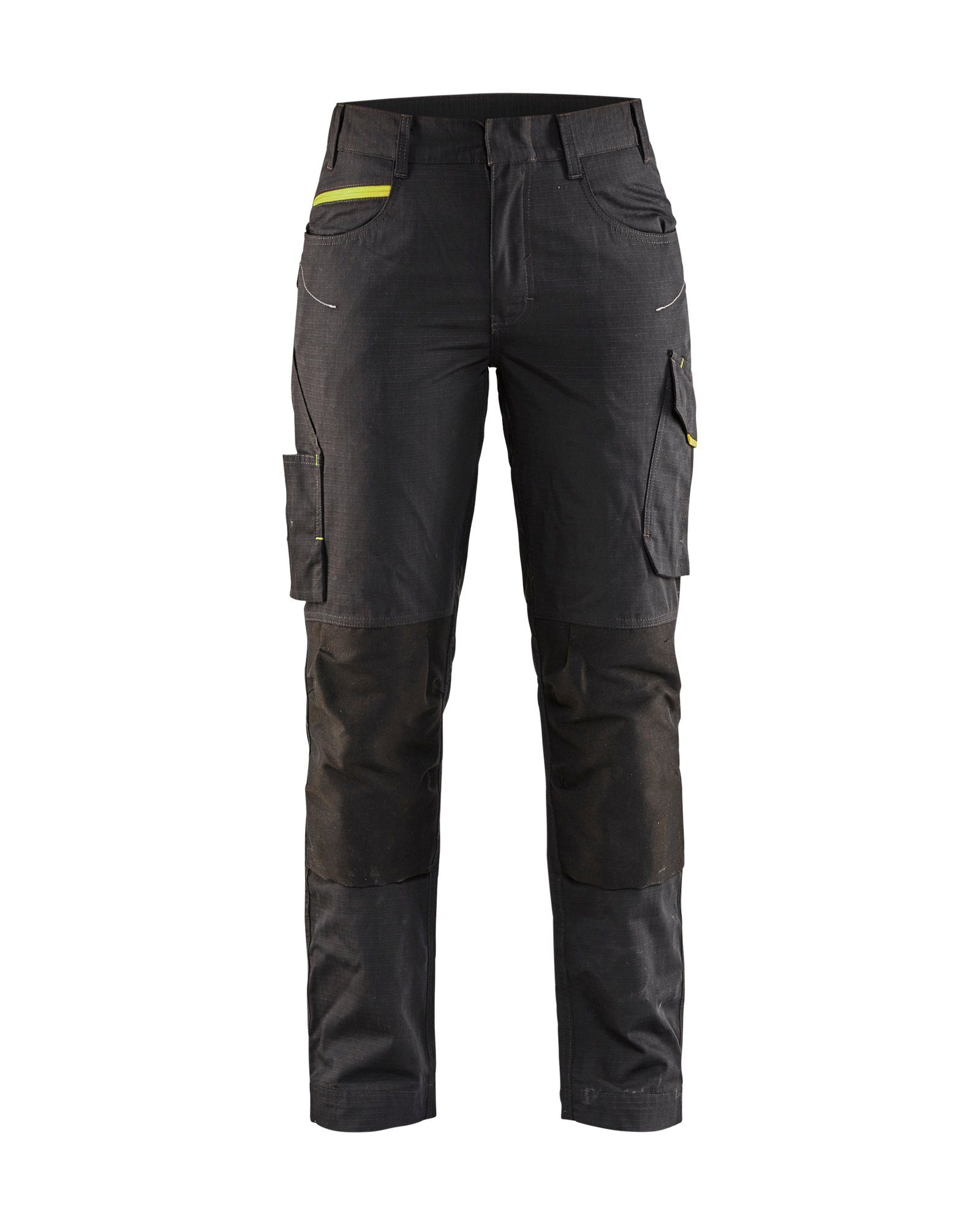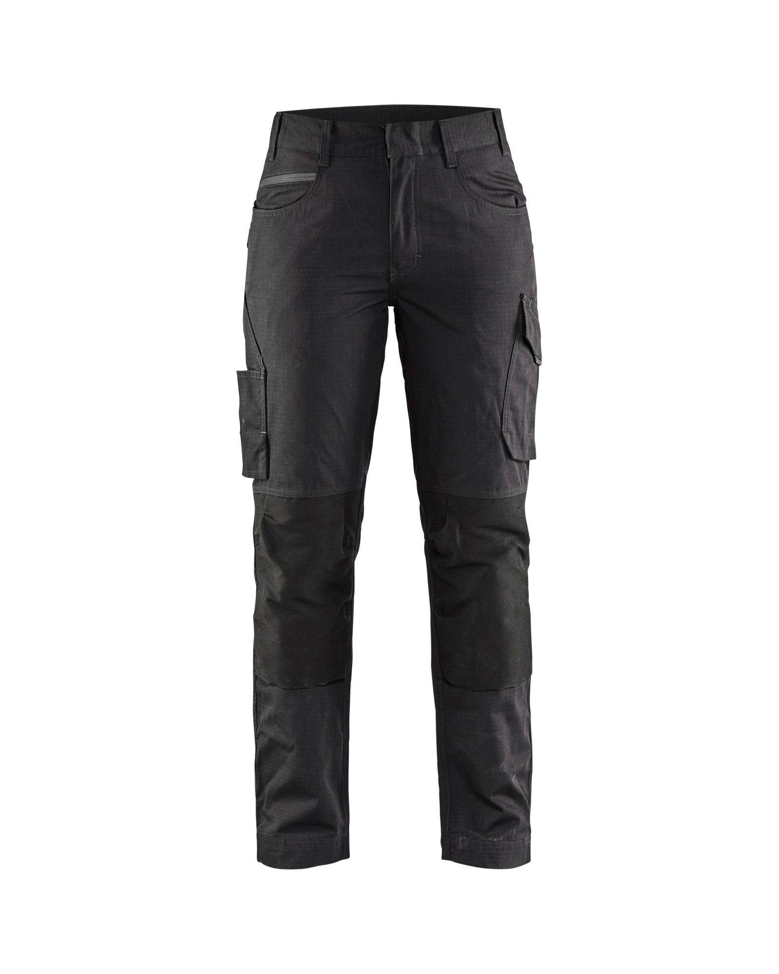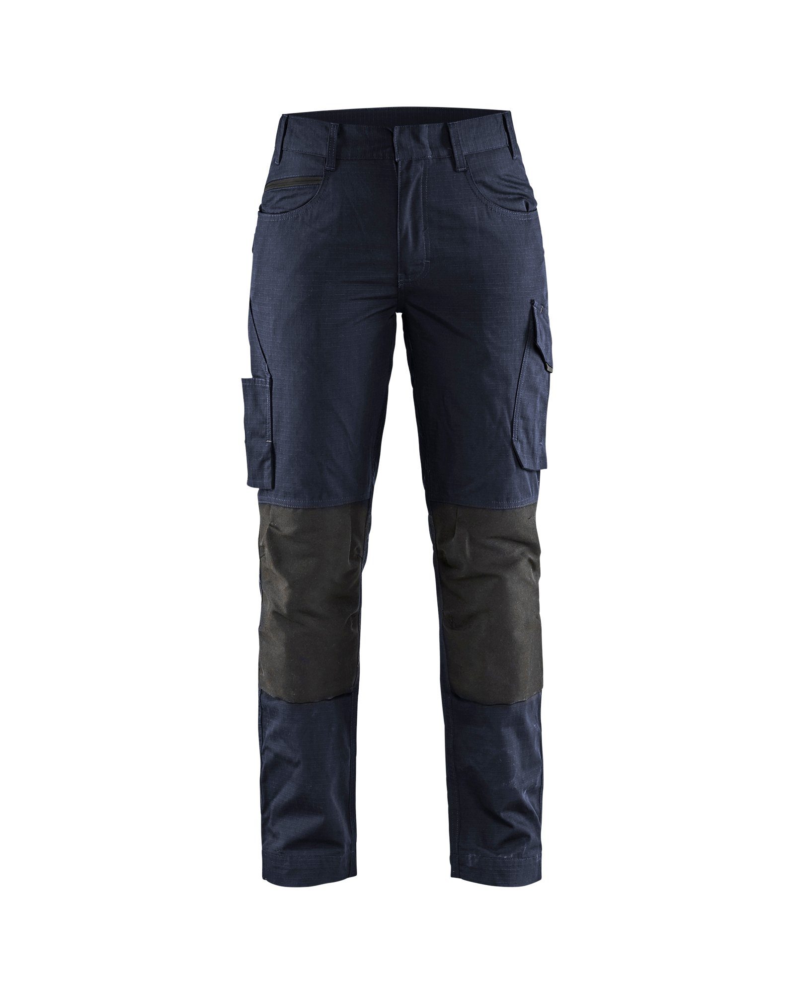 Diese Hose ist in Bezug auf Komfort, Anwendung und Aussehen funktionell. Das leichte Ripstop Material ist strapazierfähig und robust mit guter Reißfestigkeit. Die elastische Taille und die Stretch-Einsätze an der Wade und an der Innenseite der Oberschenkel bieten hervorragende Bewegungsfreiheit. Die Kniepolstertasche ist mit CORDURA® Stretch verstärkt. Die Hose ist abriebfest und hat diskrete Reflexstreifen, eine Handytasche aus Mesh und Taschen für Messer und Zollstock. Die Hosenbeine können am Saum verlängert werden.