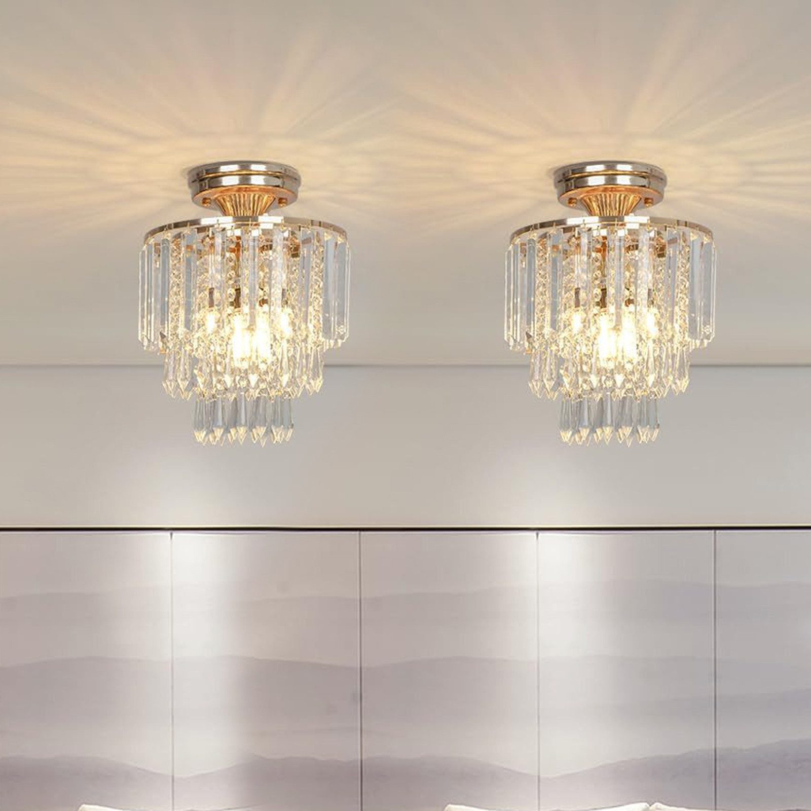 ☑ Kompakte Розмір & Elegantes Design – Mit einem Durchmesser von 23 cm und einer Höhe von 33 cm bietet diese 3-stufige Kristall-Deckenleuchte luxuriösen Glanz in kompaktem Format, ideal für kleine Räume.