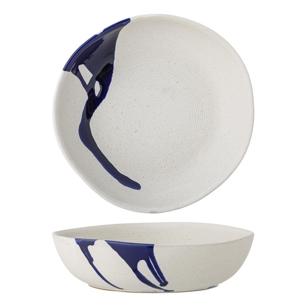 Die Okayama Schale von Bloomingville bringt mit ihrem feinen hellen Farbton, der durch die laufende Glasur in einer schönen metallischen Blaufarbe kontrastiert wird, frischen Wind in die Tischdekoration. Verwenden Sie sie als Pastateller oder zum Servieren. Aufgrund des Charakters der Glasur und der handgemachten Technik wird jede Schale einzigartig sein und im Aussehen variieren.