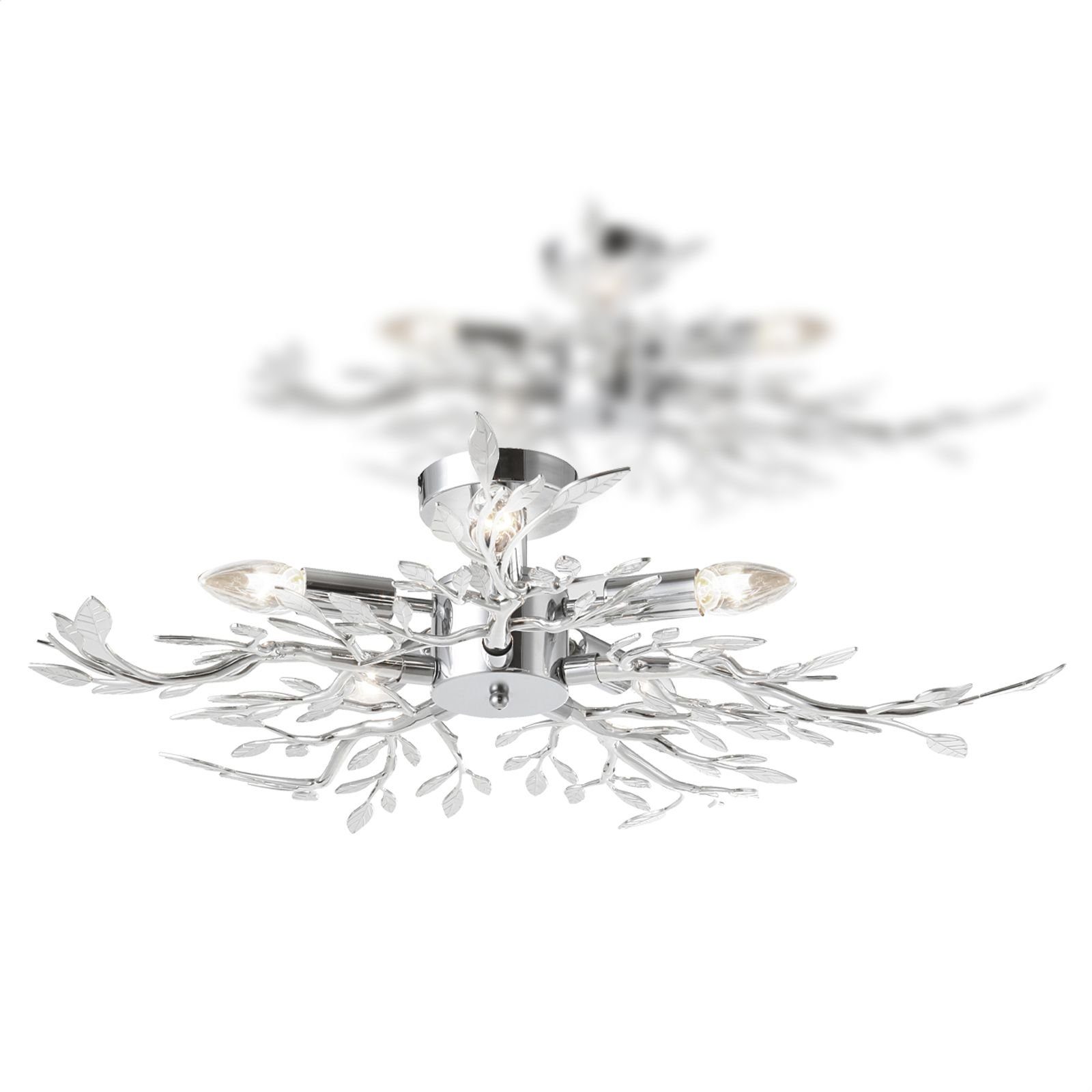 Wissenswertes | Deckenlampe - Acryl verchromt - Hochwertig Deckenleuchte mit verästelten Lampenarmen und elegantem Design. Diese Deckenleuchte versprüht durch ihre verästelten Lampenarme einen ganz besonderen Charme. Mit fünf Leuchtmitteln strahlt sie viel Licht ab und erhellt so auch Ihre größeren Räume. |