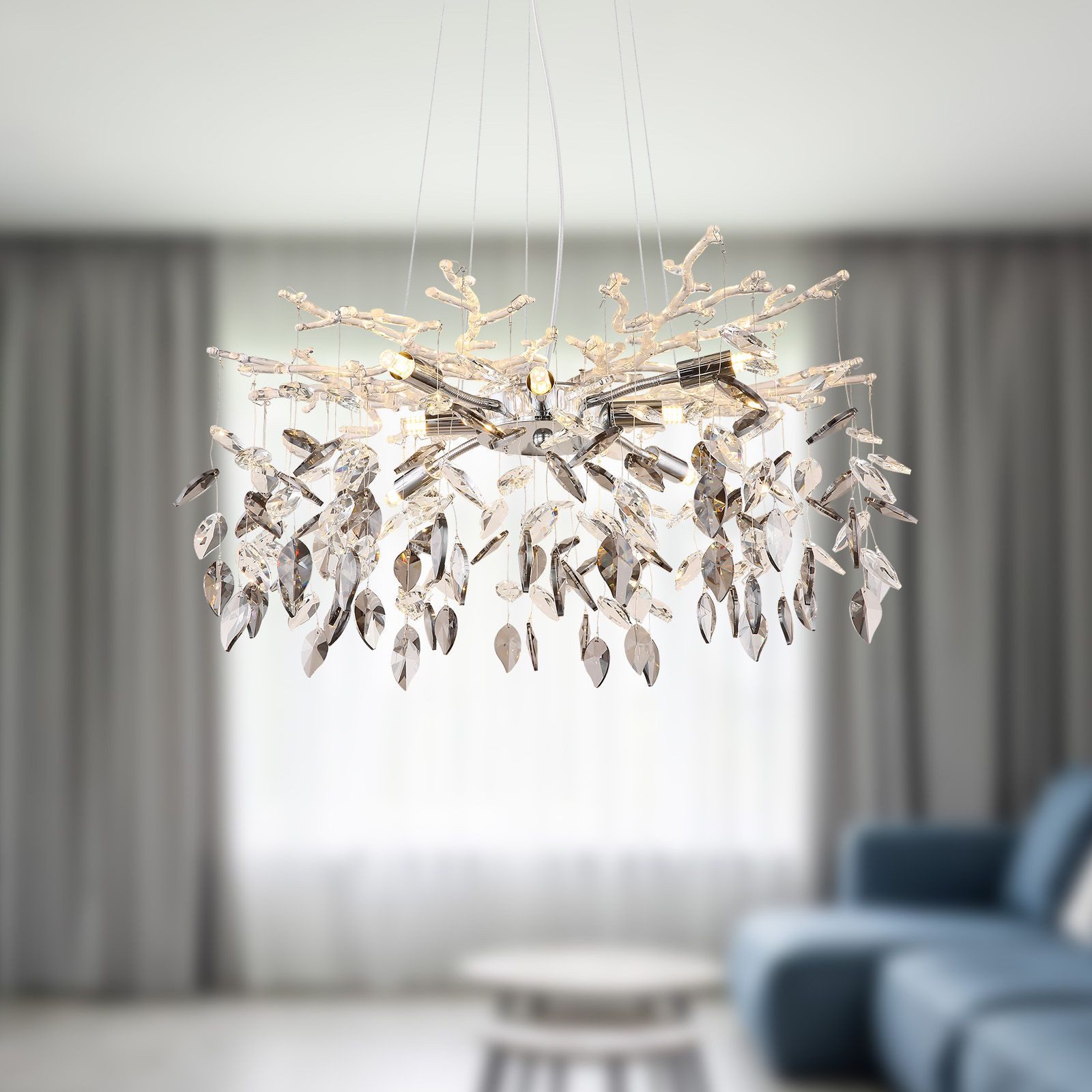 Der Schirm der Hängelampe besteht aus rauchfarbenen und klaren Glaskristallen, die das Licht auf wunderschöne Weise reflektieren und einen beeindruckenden Lichteffekt erzeugen. Dieses funkelnde Highlight macht die Leuchte zu einem echten Hingucker.