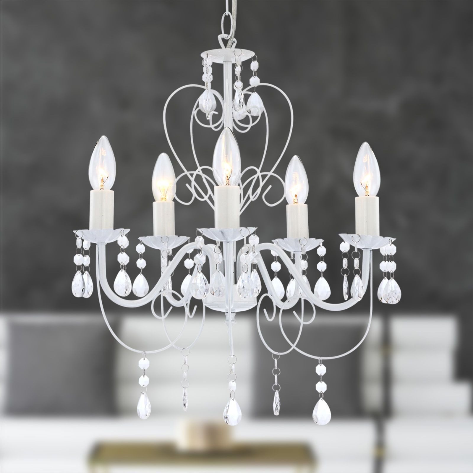 Wissenswertes | KRONLEUCHTER - KRISTALLE - WEIß Dieser traditionelle Luster zeichnet sich durch sein Vintage-Design, sowie durch seine hochwertige Verarbeitung aus. Bei der Anfertigung dieser Hängelampe wurden weißes Metall und klare Acrylkristalle gewählt, die dieser Lampe eine extravagante Optik verleihen. Fünf, an den geschwungenen Armen montierte, E14 Fassungen bieten Ihnen die Möglichkeit beliebige Leuchtmittel (max. 40W) einzusetzen. |