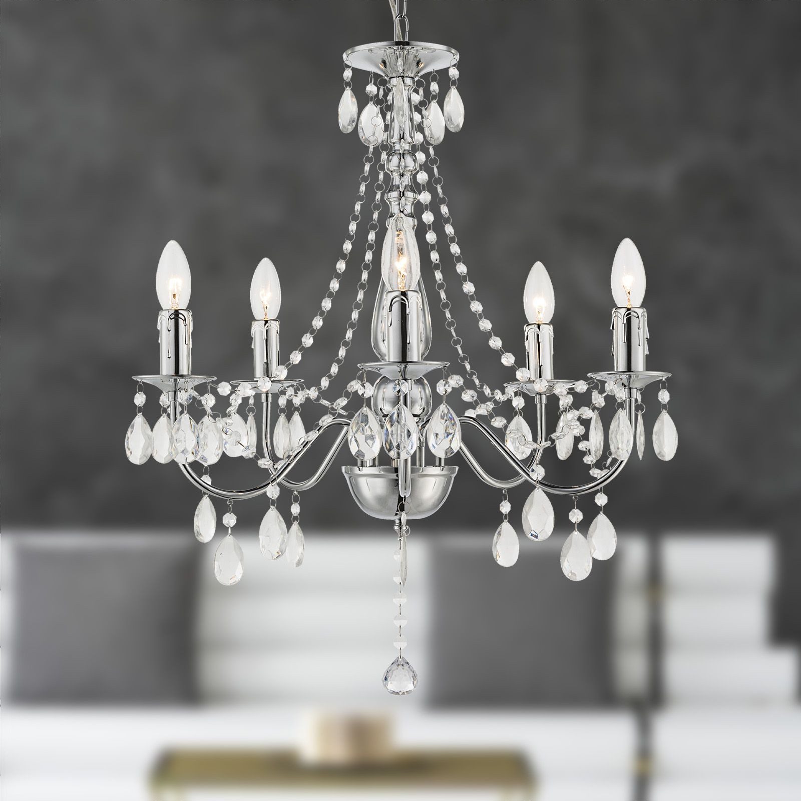 Die Kristalllampe bietet Platz für fünf E14-Lampen (nicht im Lieferumfang enthalten), wodurch Sie die Möglichkeit haben, die Lichtintensität nach Ihren Wünschen zu gestalten.