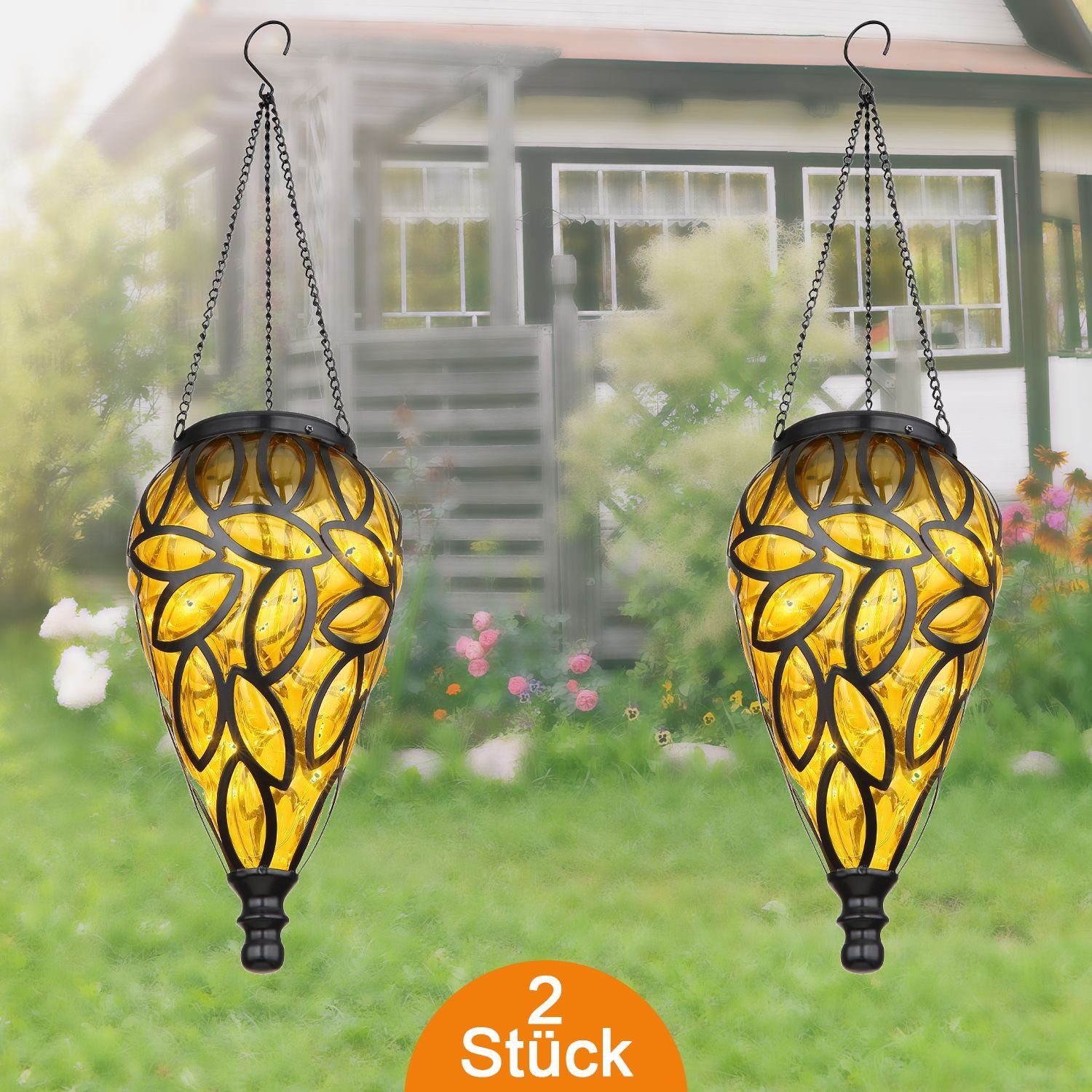 2er Set Solarlampe Tropfen hängend Amber 15XLED