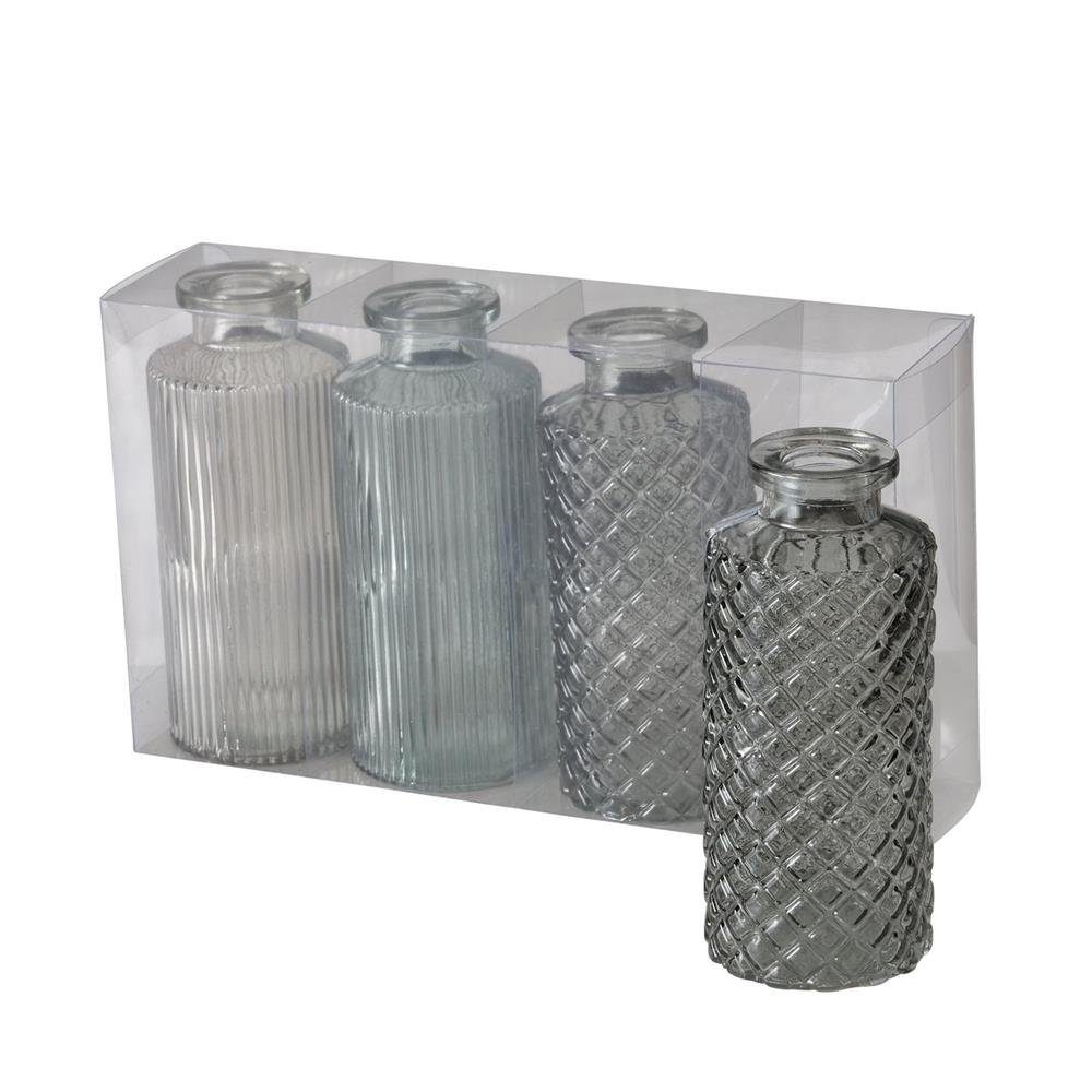Das BOLTZE Vase Panja 4er Set verleiht Ihrem Zuhause eine elegante Note. Die Vasen sind aus hochwertigem Glas gefertigt und lackiert, was ihnen einen glänzenden Effekt verleiht. In den Farben Grün und Hellgrün gehalten, passen sie perfekt zu verschiedenen Dekorationsstilen. Die Vasen haben eine Höhe von 14 cm und einen Durchmesser von 6 cm, perfekt für kleine Blumenarrangements oder einzelne Blüten. Wasserdicht und für den Innenbereich geeignet, sind sie ideale Dekorationsstücke, die jedem Raum eine stilvolle Atmosphäre verleihen.