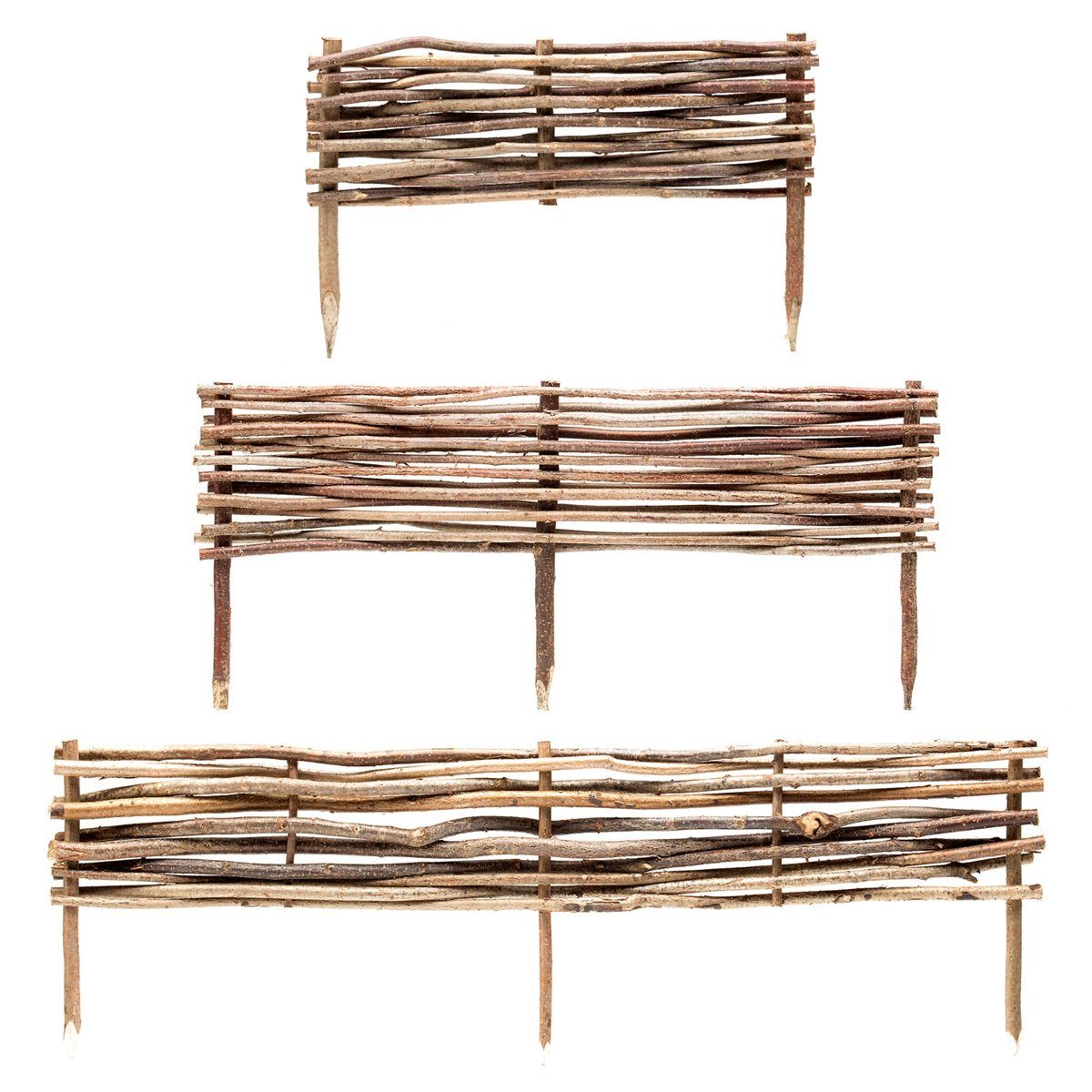 Beetumrandung werden dazu genutzt, in einem Blumen-, Gemüse- oder Kräutergarten einzelne Beete getrennt voneinander abzustecken, sodass eine bessere Überschaubarkeit der Gartenanlage gewährleistet wird. Gleichzeitig dient eine Beeteinfassung auch als optische Abgrenzung zum restlichen Gartenareal und verdeutlicht, wo der Nutzgarten beginnt. Beeteinfassungen sind eine äußerst charmante und funktionale Bereicherung für jeden Garten und werden deshalb auch gerne zu dekorativen Zwecken genutzt. Die hier angebotene Beeteinfassung besteht zu 100 % aus Haselnussholz, das durch seine hohe Witterungsbeständigkeit und seine starre Flechtung besticht.