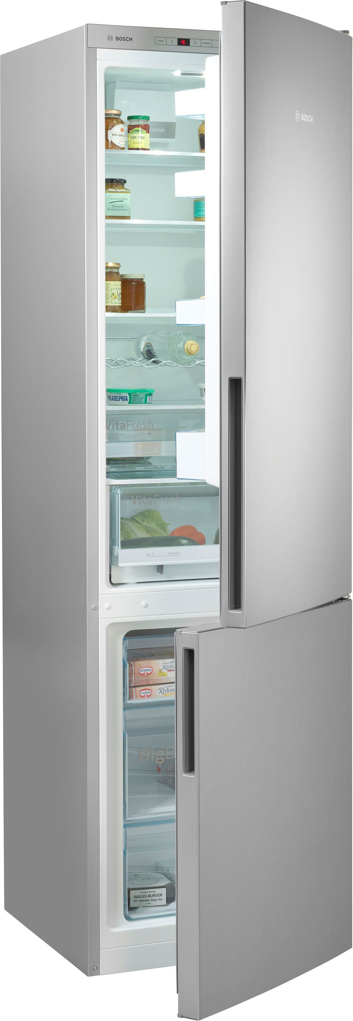 Top-Features | Antifinger-Edelstahl-Beschichtung LED-Innenbeleuchtung LowFrost-Technologie Supergefrierfunktion VitaFresh 0°C Schublade bigBox easyAccess Shelf vitaFresh |