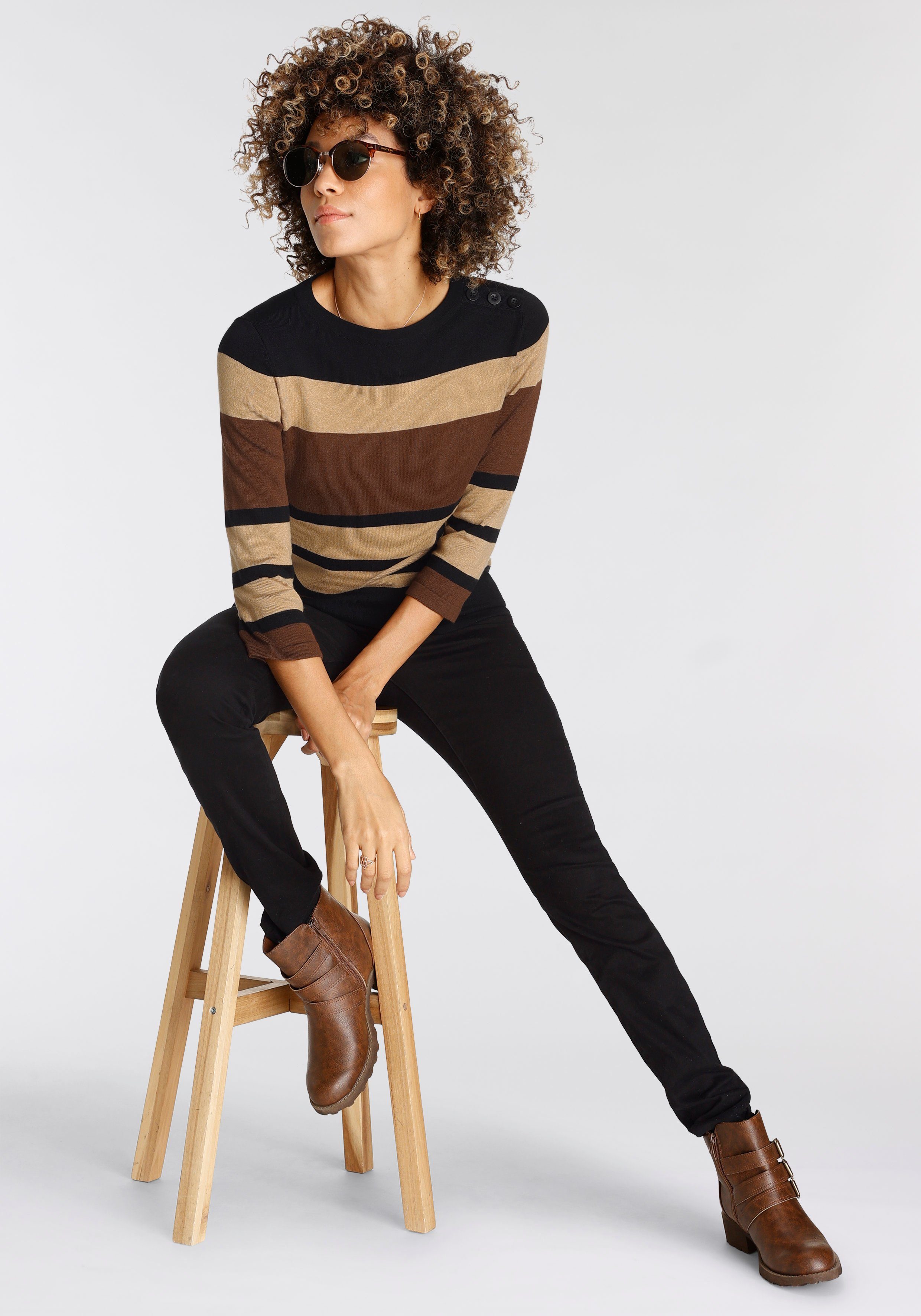 Besondere Merkmale | im modischen Streifen-Design mit Zierknopfleiste |