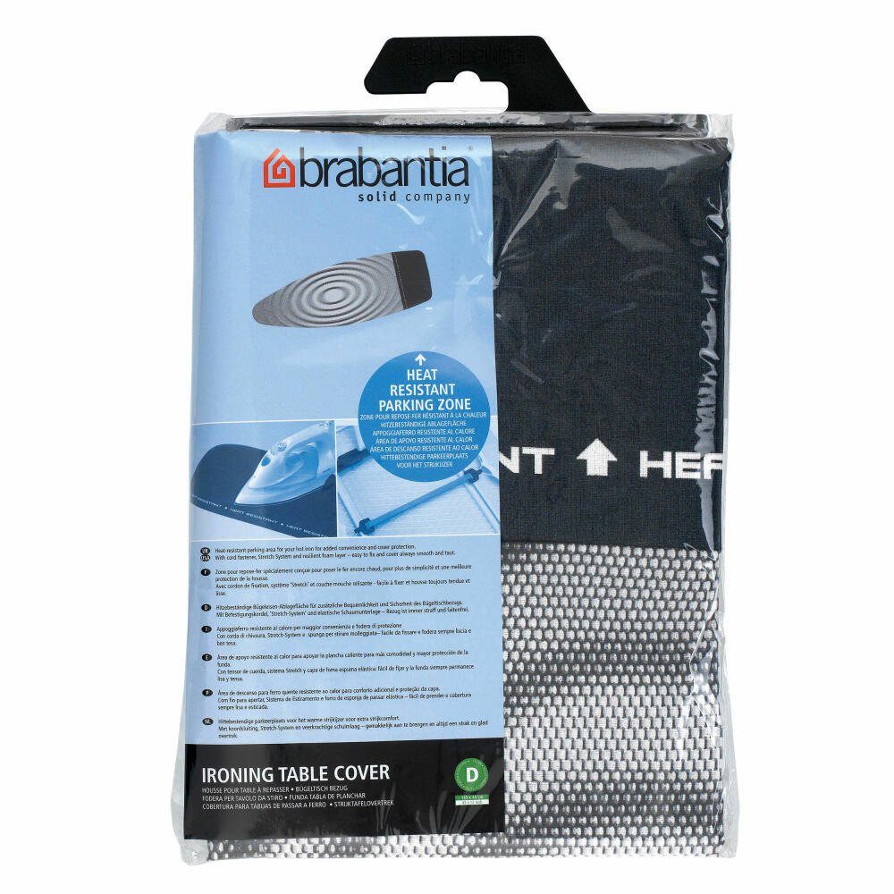 1 Brabantia Bügelbrett Bezug, Bügelbezug, Bügeltischbezug, Bügelbrettbezug, Baumwolle & 2mm Schaumstoff, mit Kordelzug, Titan Oval, Розмір D, 135 x 45 cm, Titan Oval, 266782