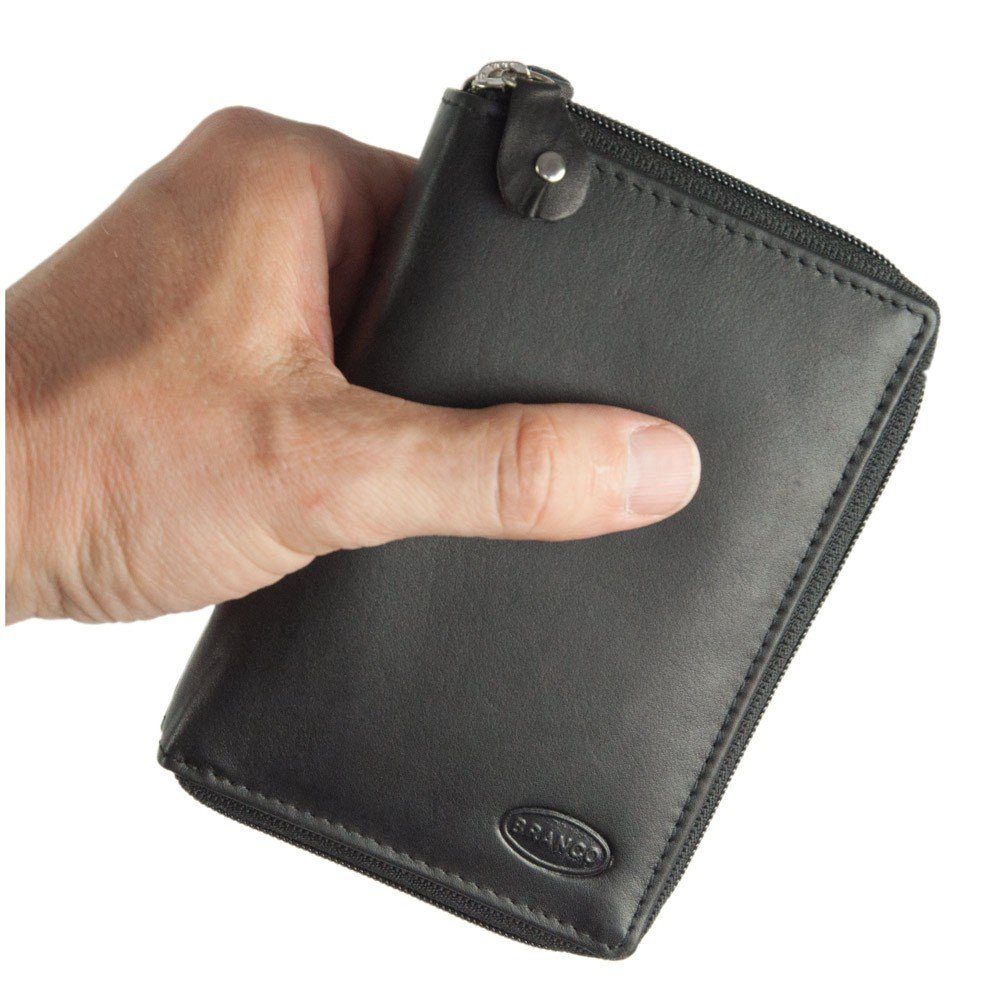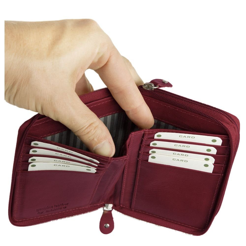 Rund um das Münzfach sowie um das Hauptfach mit dem Geldscheinfach und den vielen Einsteckfächern läuft jeweils ein Reißverschluss. So ist alles immer übersichtlich und sicher verstaut.