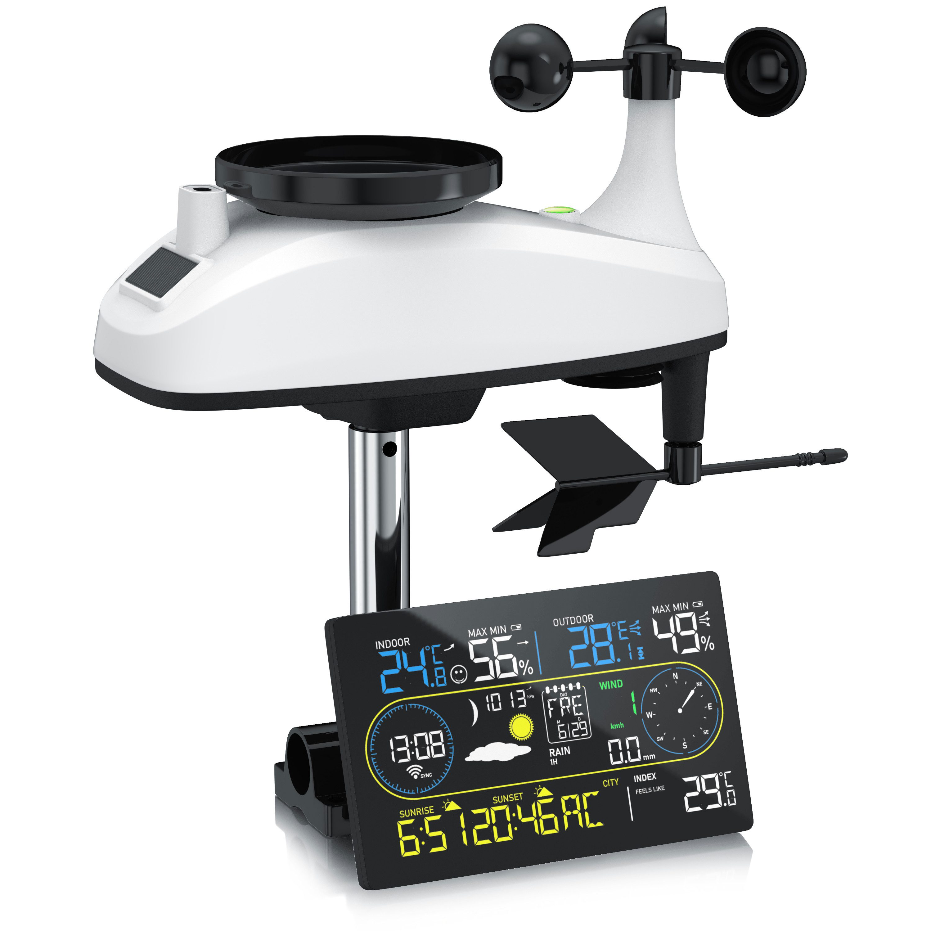 Ausstattung | LCD-Farbdisplay (7,9 Zoll) mit 2 Helligkeitsstufen Temperaturanzeige/Luftfeuchtigkeit (innen, außen) Luftdruckanzeige Windanzeige Regenanzeige Wettervorhersage u.v.m. |