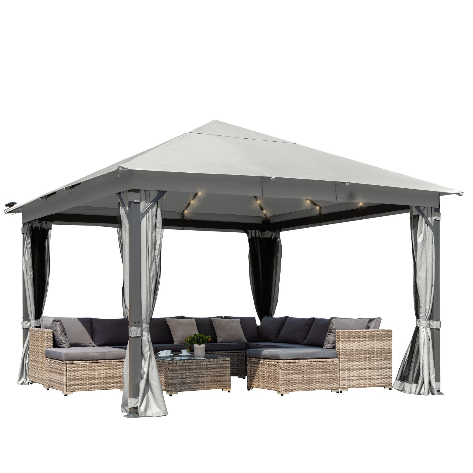 Die Aluminium Gartenpavillons bieten ausreichend Platz für die ganze Familie und überzeugen dabei durch eine angenehme Durchgangshöhe: