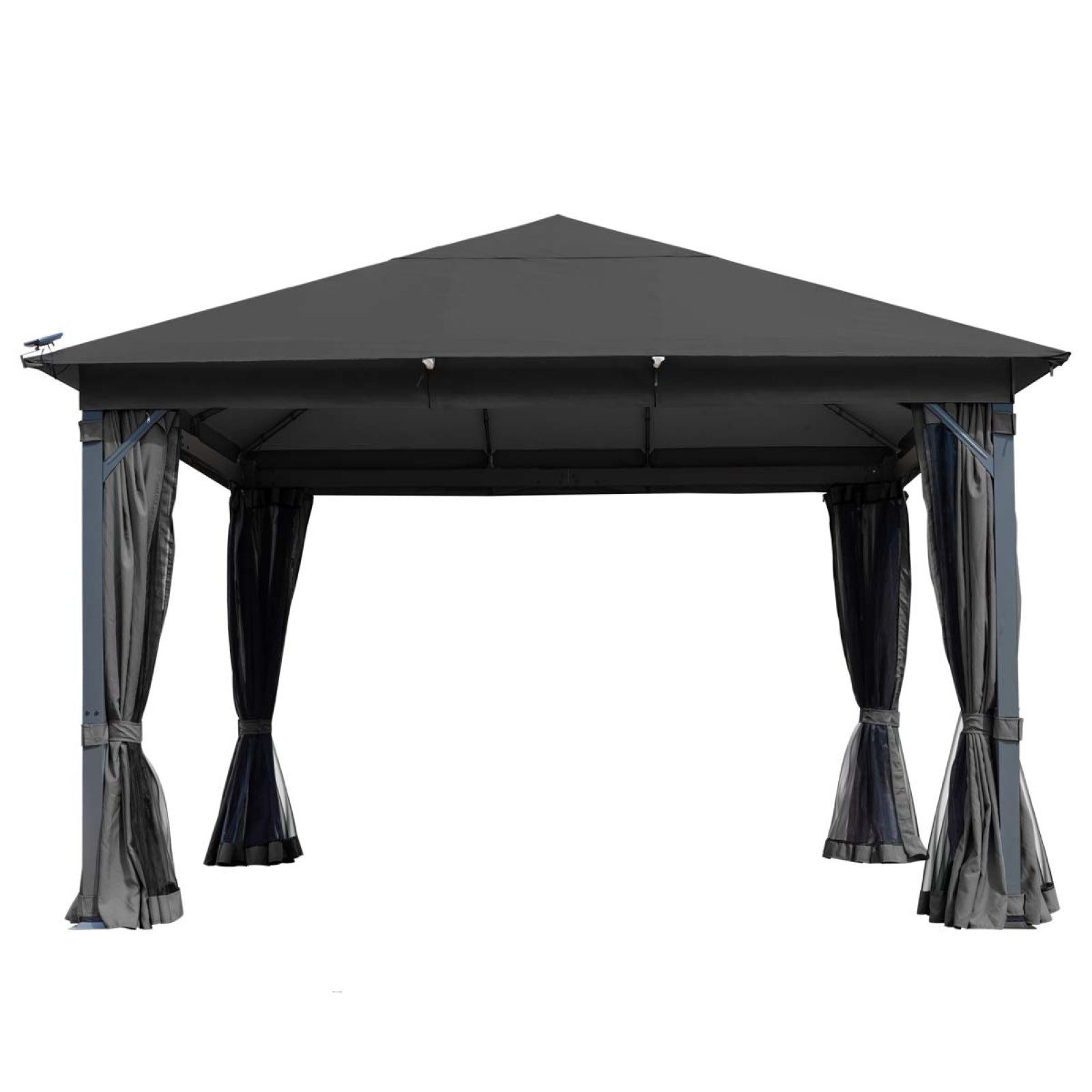 Genießen Sie Ihren Gartenpavillon mit individuell verschließbaren Seitenwänden und optimalem Schutz vor Plagegeistern durch das rundum verschließbare Moskitonetz: