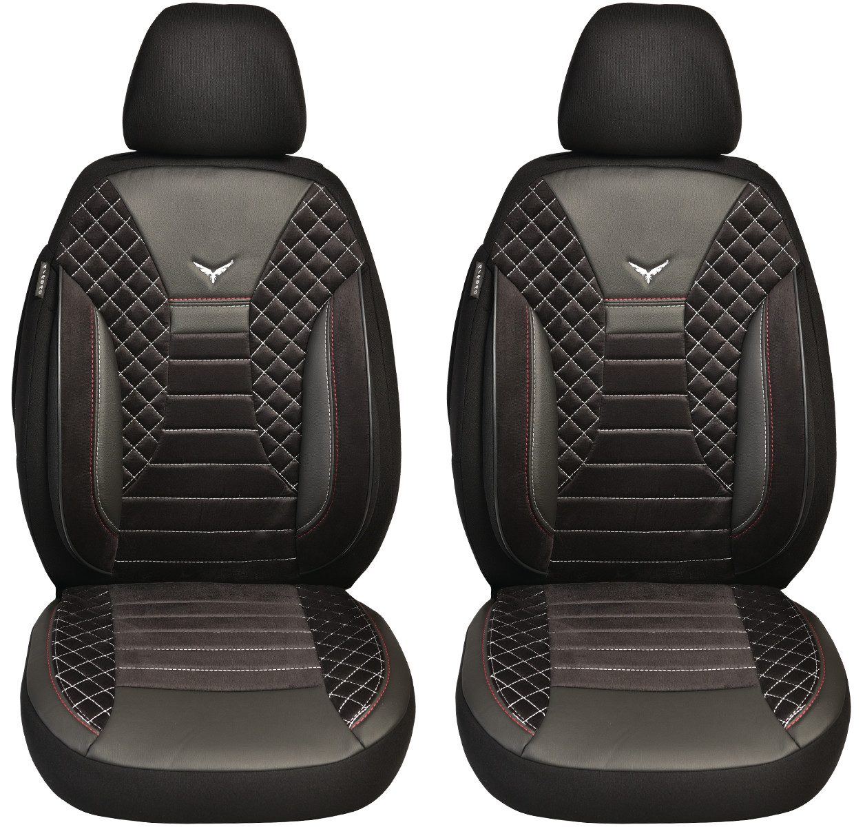 Set, Schonbezüge Sitzbezüge Fahrer und Beifahrer, in Schwarz/Weiße Naht