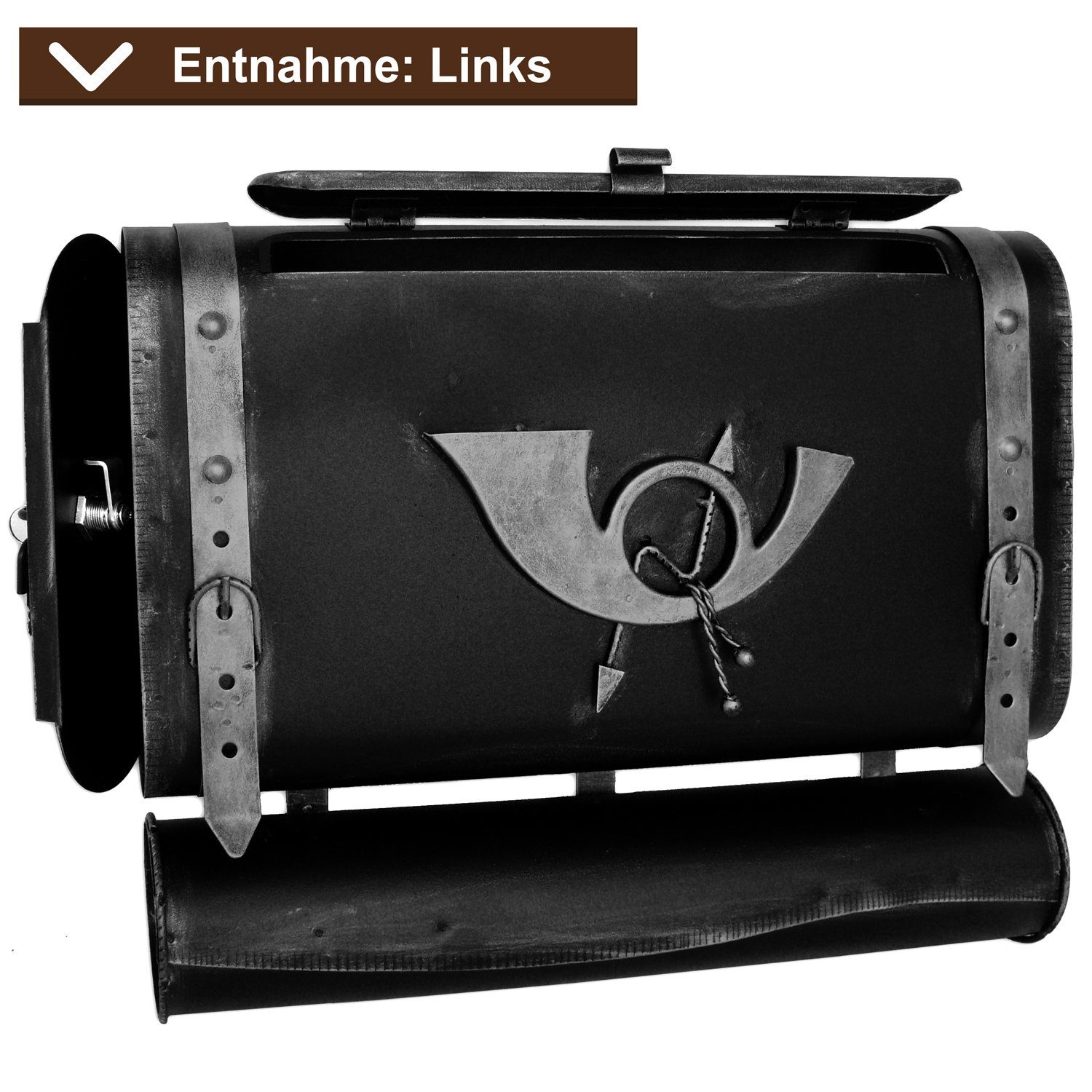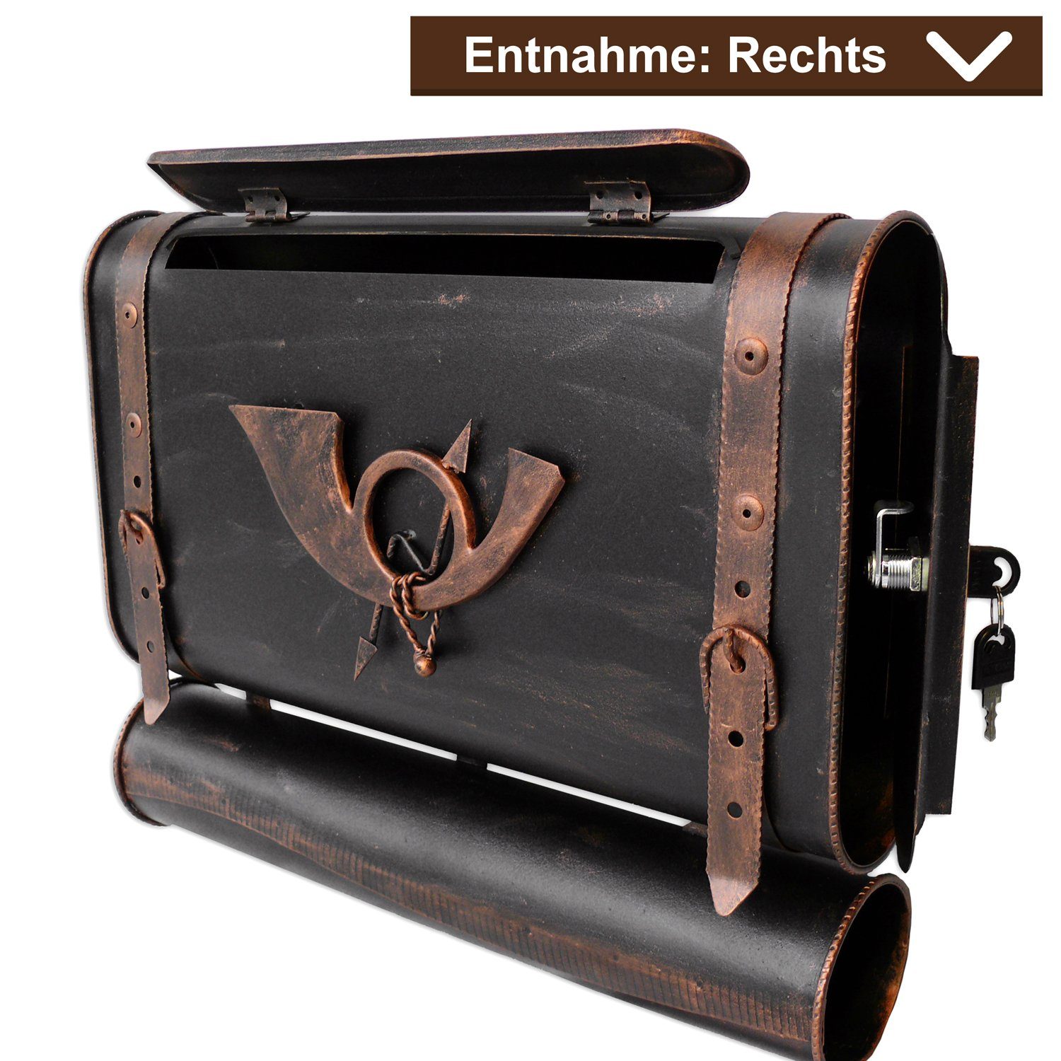 Unser Postkasten im antiken Design ist als Innen- und Außenbriefkasten geeignet. Unterhalb des Briefkastens befindet sich eineZeitungsrolle für Prospekte, Illustrierte und die Tageszeitschrift. Dieses zusätzliche Zeitungrohr sorgt dafür, dass Sie Ihre Zeitungen, Zeitschriften und Prospekte direkt und unversehrt entnehmen können. Außerdem sparen Sie dadurch im Briefkasten Platz für Ihre Briefpost. Kleinere Unregelmäßigkeiten durch die Handarbeit sind charakteristisch und betonen die Einzigartigkeit dieser Postbox.