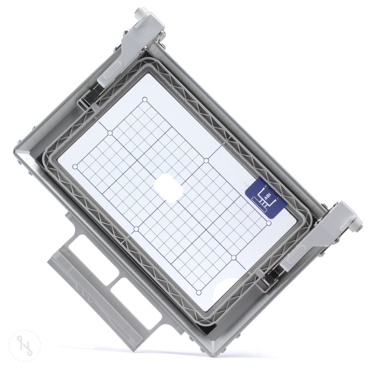 Einfach nur den Rahmen seitlich öffnen, den Stoff entlag der Kante positionieren und mit 2 Klicks wieder verschließen, so gelingt es punktgenau umzuspannen und das Muster stichgenau fortzusetzen.