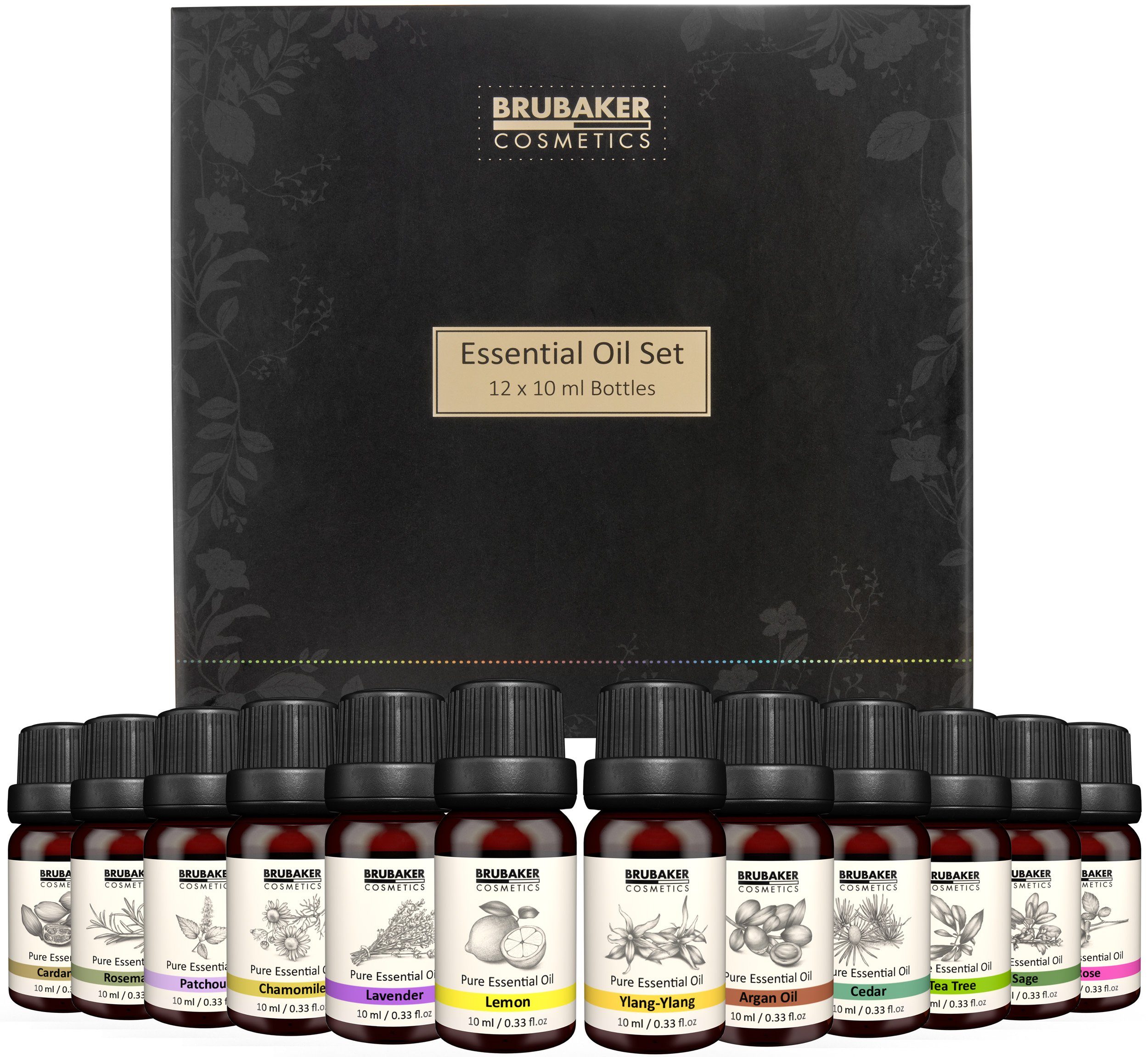 Sie erhalten 12 Glasflaschen mit je 10 ml Öl in einer Geschenkbox. Всі Flaschen schützen die Öle vor UV-Strahlen und sind auslaufsicher.