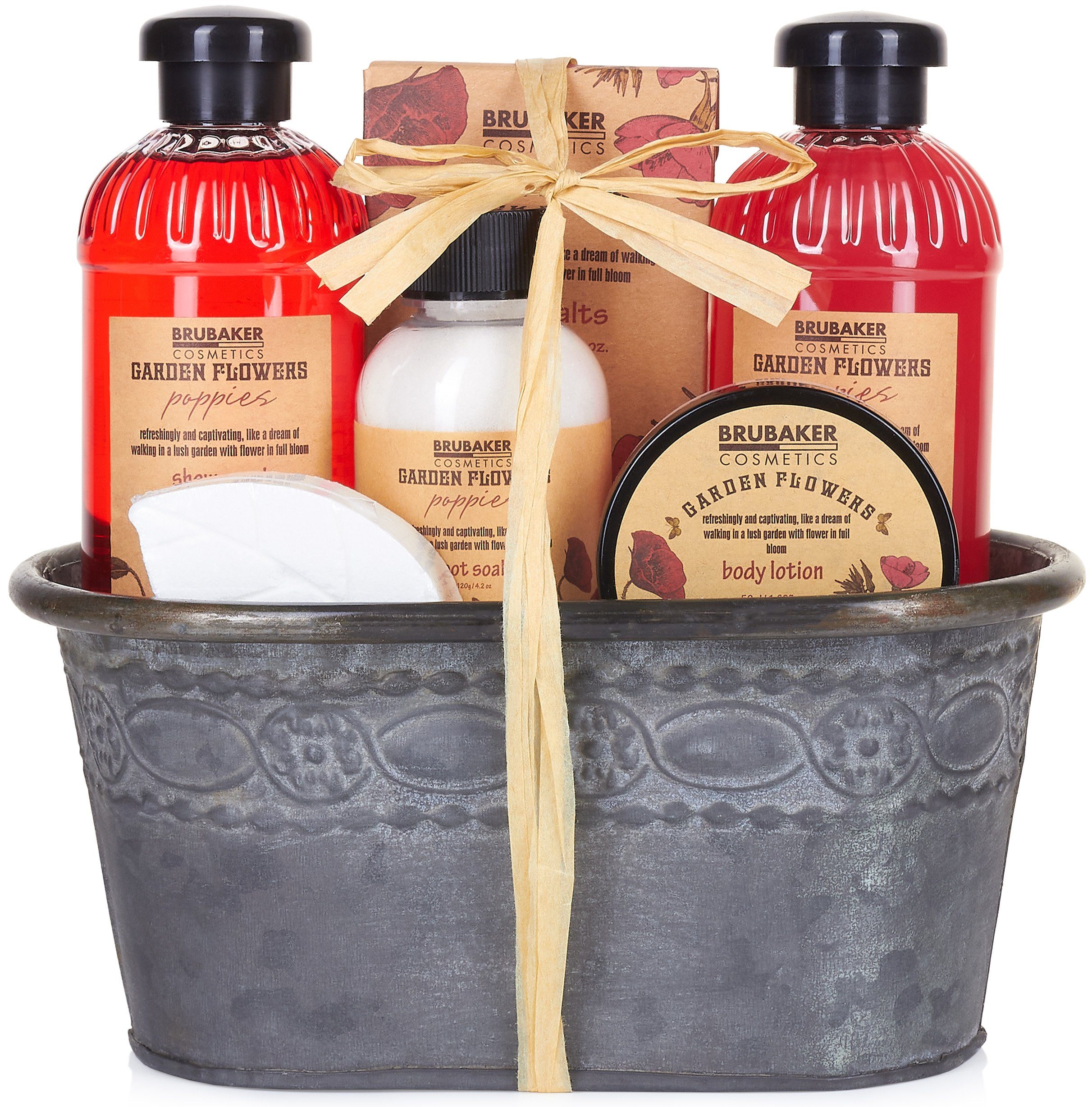 BRUBAKER Cosmetics Bade- und Dusch Set "Garden Flowers" - Mohnblumen Duft - 7-teiliges Geschenkset im Vintage Pflanzkübel