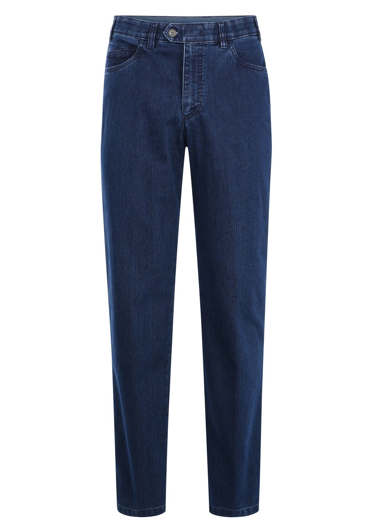 Diese 5-Pocket-Hose ist ein wahres Allroundtalent. In normalem Schnitt zeigt sie sich mit Komfortbund und überzeugt darüber hinaus mit zwei Swingpockets, zusätzlicher Münztasche rechts und zwei durchgeknöpften Doppelpaspelgesäßtaschen. Die acht Gürtelschlaufen eignen sich bestens dazu, mit einem Gürtel zusätzlichen Halt und Style anzubringen. Hochwertig verarbeitet ist die Hose optimal im Alltag oder ins Büro tragbar. Die Fußweite bei Gr. 50 beträgt 41 cm.