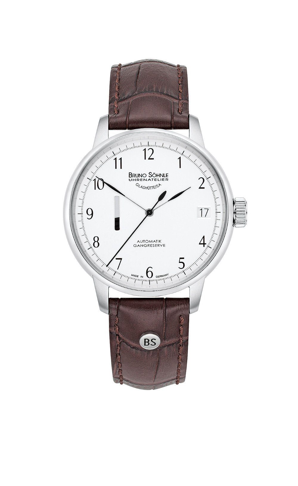 Dieses Bruno Söhnle Herrenmodel, entzückt seine Träger durch ein elegantes und schlichtes Design. Doch die Uhr sieht nicht nur stylisch aus, sondern ist qualitativ auch sehr hochwertig. Ein perfektes Beispiel für die bereits erwähnte Qualität, ist das Lederband, welches durch die weiche Innenseite für einen sehr hohen Tragekomfort sorgt. Das silberne Zifferblatt, verfügt über eine kleine Datumsanzeige und eine Gangreservenanzeige. Durch die einfache Farbwahl, kann die Uhr zu so gut wie jedem Anlass getragen werden.