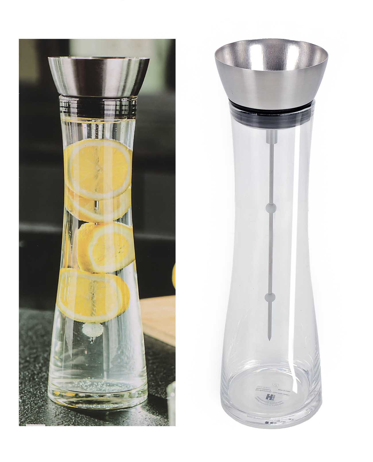 Lieferumfang | 1x Glaskanne mit Edelstahldeckel und integriertem Sieb 1x Fruchtspieß 1x Spülbürste |
