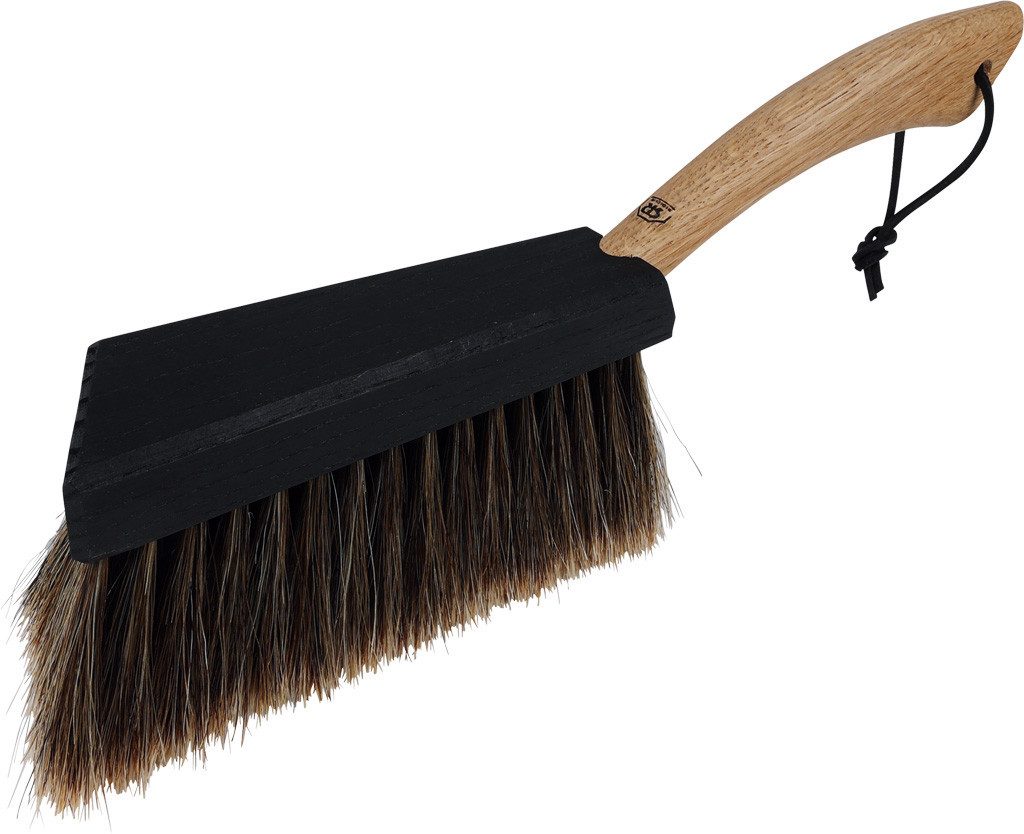 Ein ergonomisch geformte Eichenholzgriff liegt gut in der Hand und die Kombination mit dem dunkel gebeiztem Eschenkopf wirkt elegant und modern. Geschlitztes Rosshaar reinigt schonend und gründlich.