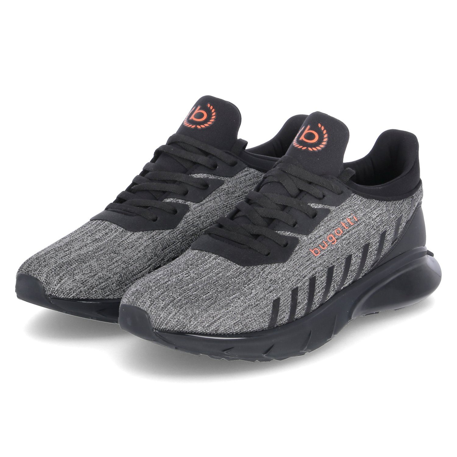 Bugatti Herren Schnürschuhe/ Low Sneaker ONDRAY Grau-Schwarz Textil - verstärkter Fersenbereich - gepolsterter Einstieg - gelabelt - gepolstertes Wechselfußbett - Zierstreifen - rutschhemmende Laufsohle