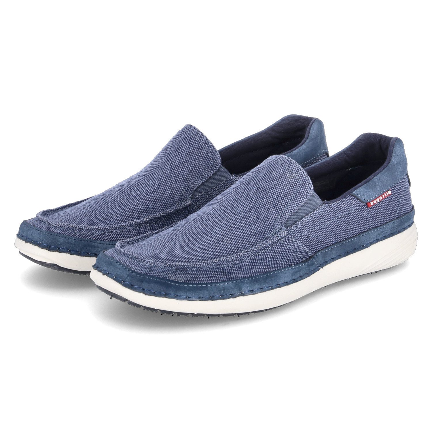 Bugatti Herren Slipper MARZ Blau Textil-Synthetik-Mix - vegan - gepolsterter Einstieg - Stretcheinsätze seitlich vom Spann - verstärkter Fußrahmen - gepolsterte Decksohle - flexible, rutschhemmende Laufsohle