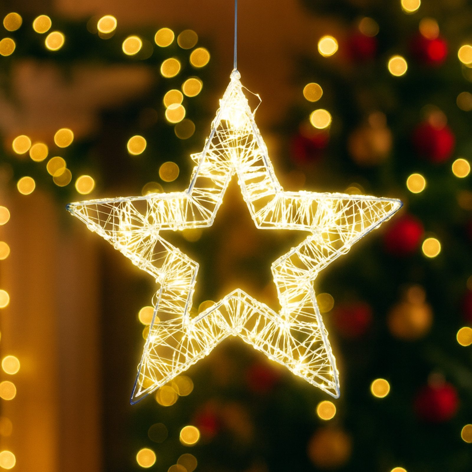 Suchen Sie nach der perfekten Weihnachtsdekoration für Ihr Zuhause? Unser LED-Leuchtstern auf robustem Drahtgestell ist die ideale Wahl! Mit 860 warmweißen LEDs zaubert er eine gemütliche Atmosphäre, die drinnen und draußen für festlichen Glanz sorgt. Egal ob hängend im Fenster oder dekorativ auf einer Kommode platziert – dieser Stern zieht alle Blicke auf sich.