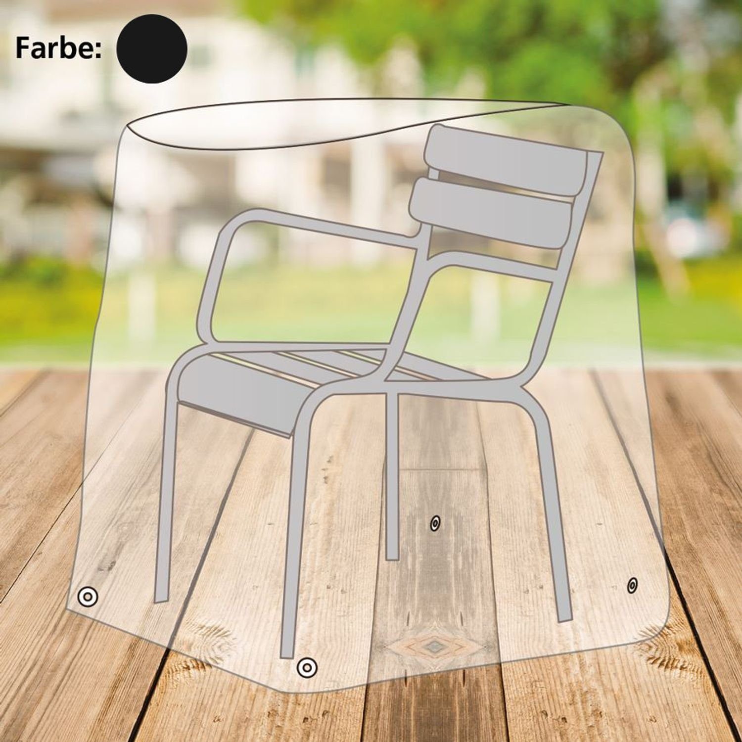 Diese feste Abdeckhaube aus PE-Kunststoff schützt Ihren Gartenstuhl vor Witterungseinflüssen, Schmutz und Staub. Auch während der kalten und nassen Jahreszeit wird Ihr Stuhl sicher aufbewahrt. Stabile Ösen am unteren Ende der Abdeckfolie erlauben eine einfache und sehr schnelle Befestigung und Sicherung der Haube.