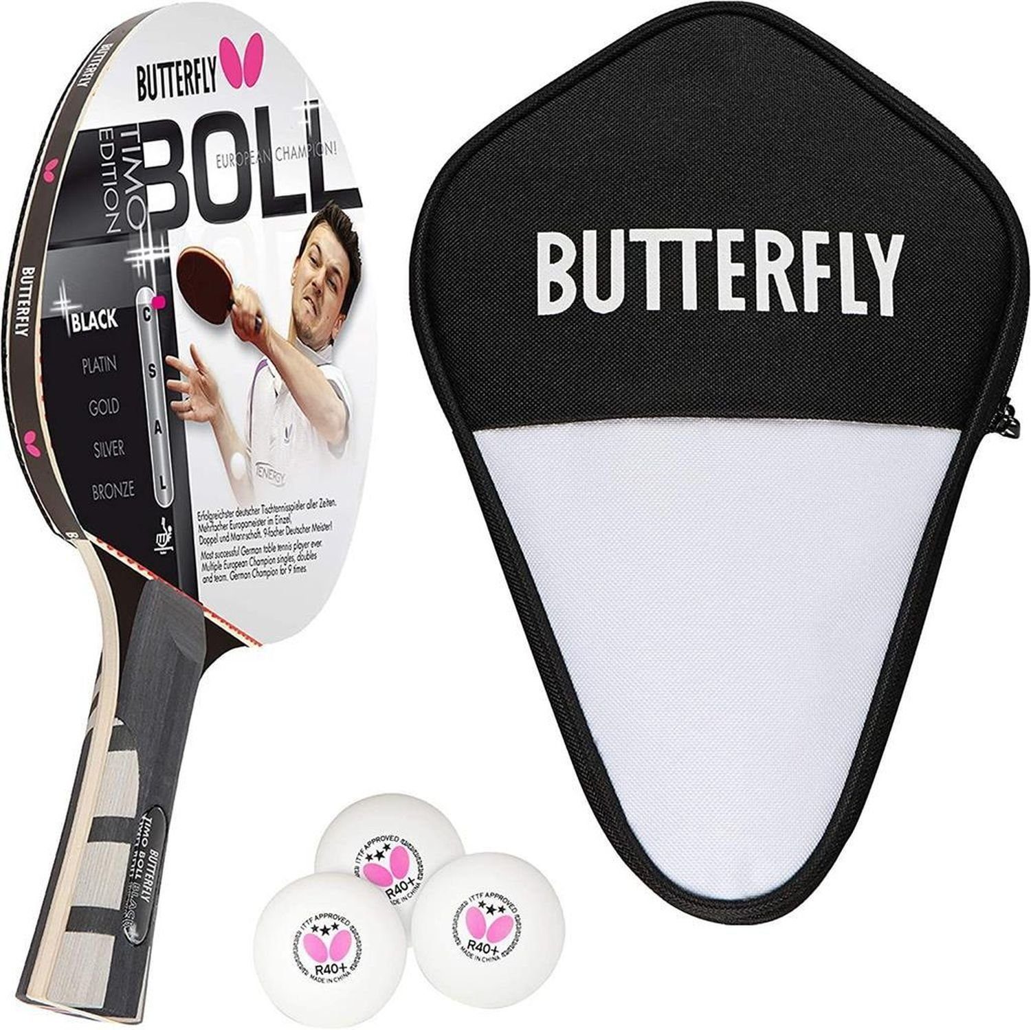 Butterfly 1x Timo Boll Black 85030 Tischtennisschläger + Hülle + 3x 3*** Bälle