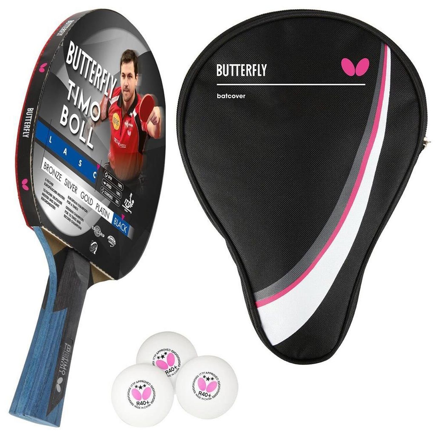 Butterfly 1x Timo Boll Black 85031 Tischtennisschläger + Hülle + 3x Bälle