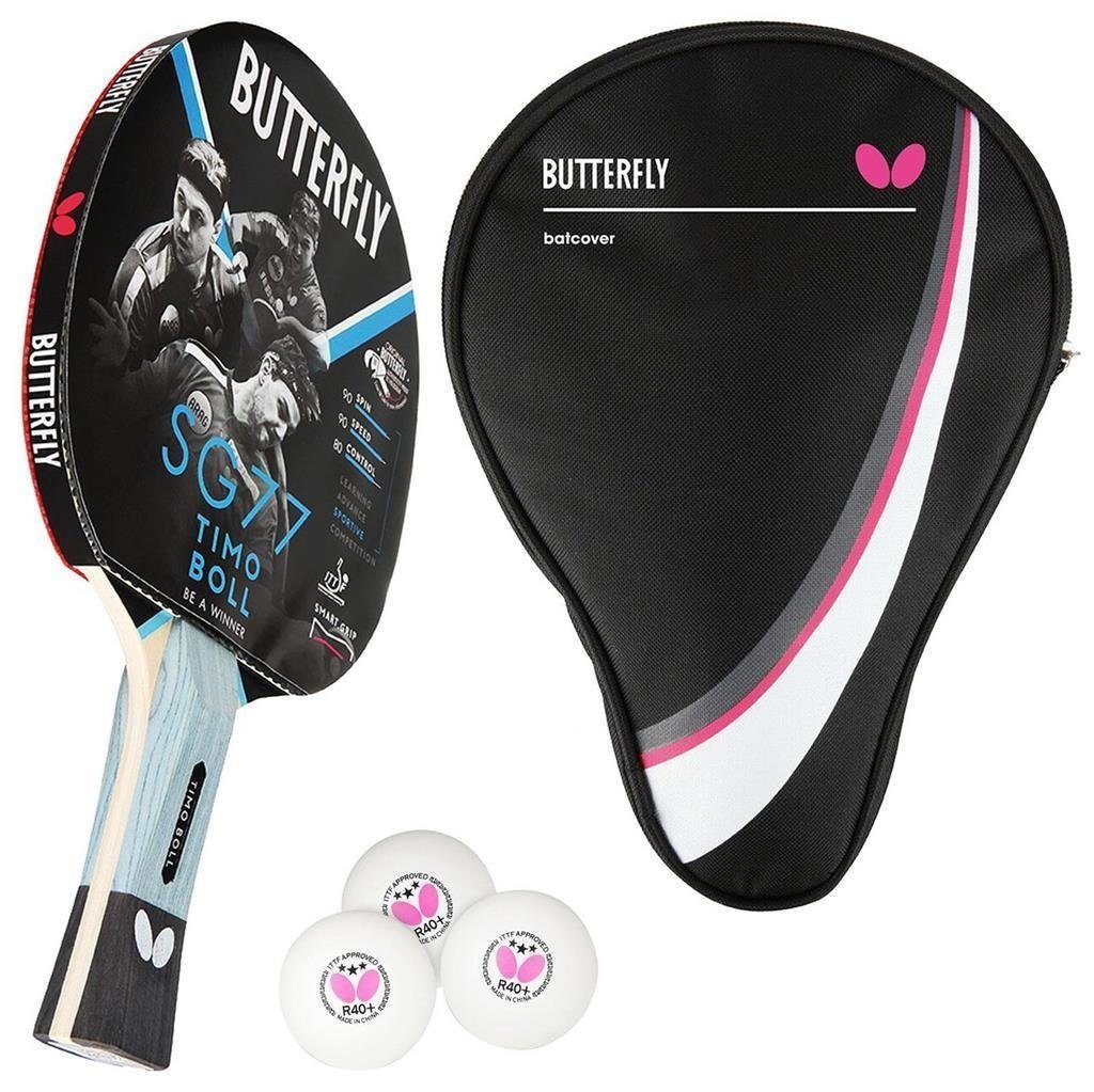 Butterfly 1x Timo Boll SG77 Tischtennisschläger + Hülle Drive Case + 3x TT Bälle