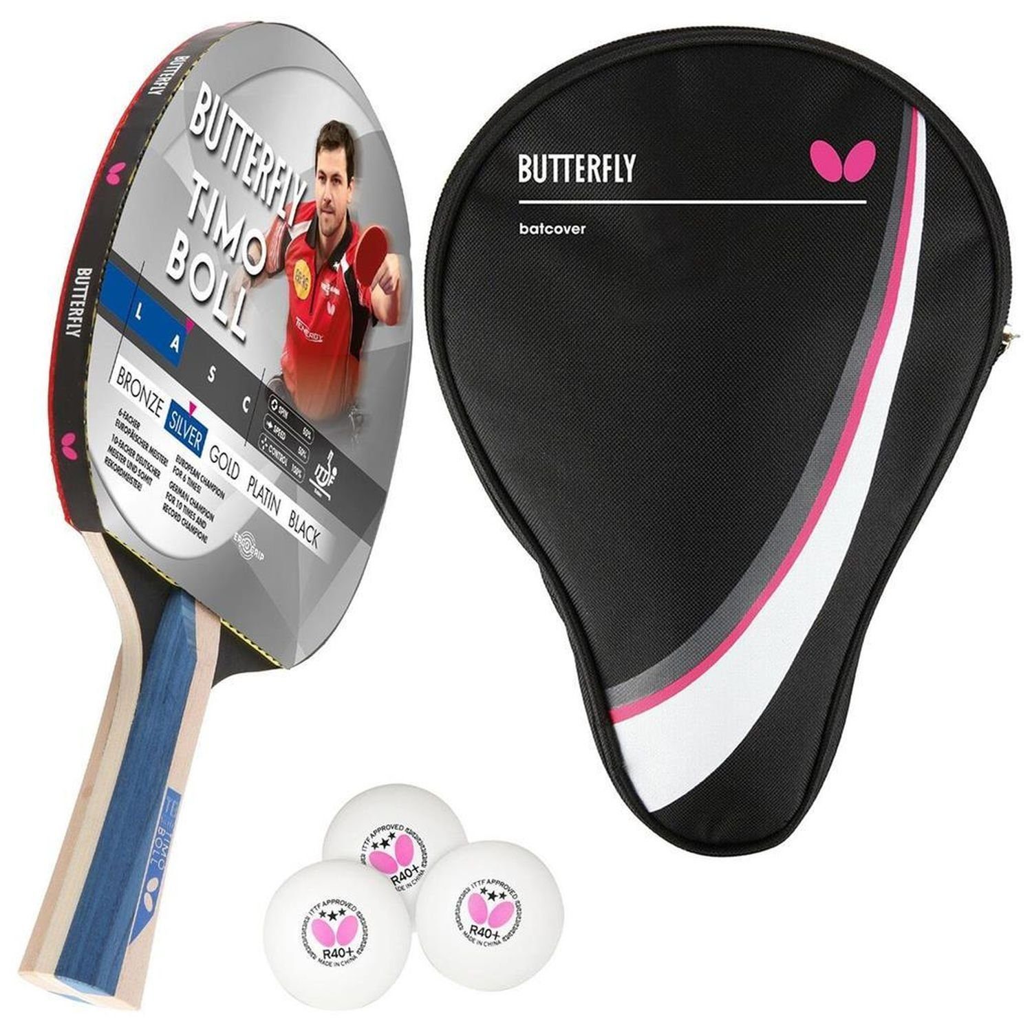 Lieferumfang | Butterfly 1x Timo Boll Silber 85016 Tischtennisschläger + Hülle + 3x Bälle |