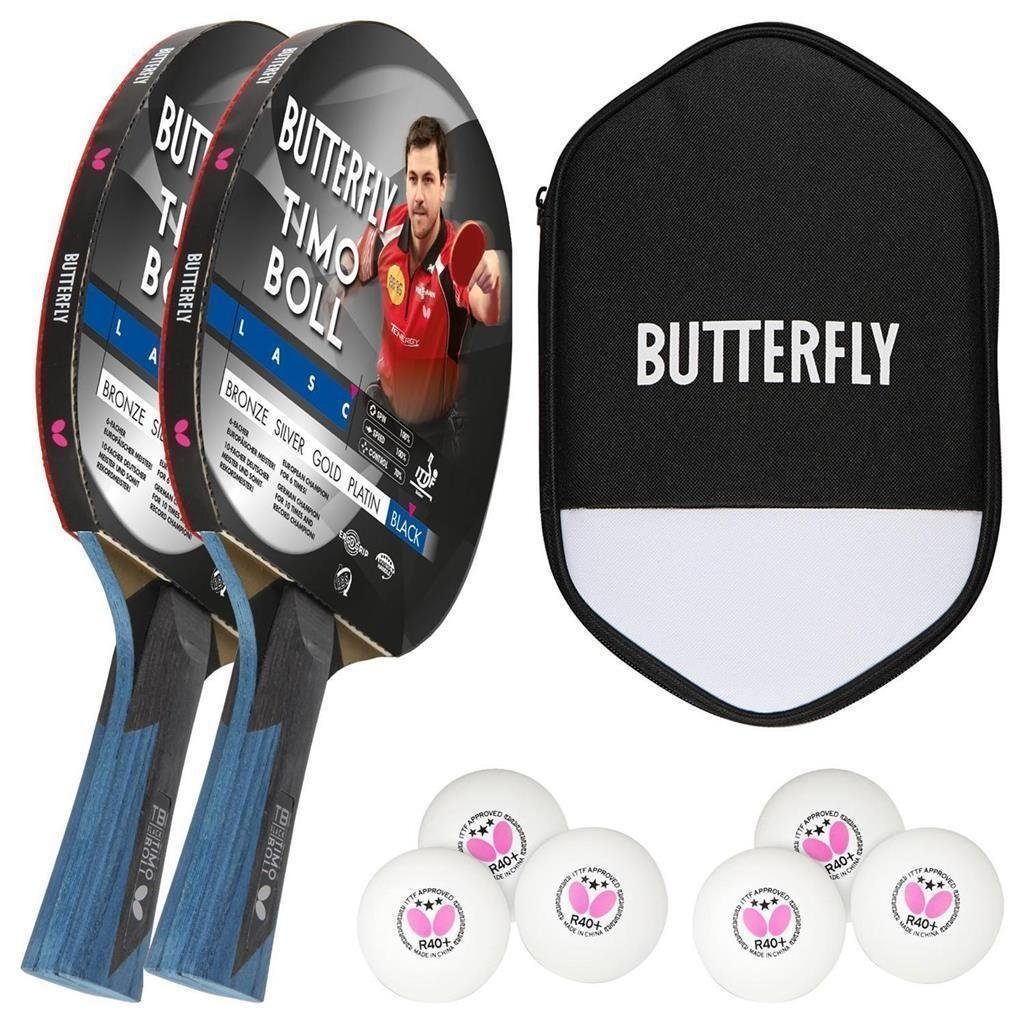 Lieferumfang | Butterfly 2x Timo Boll Black 85031 Tischtennisschläger + Hülle + 6x 3*** Bälle |