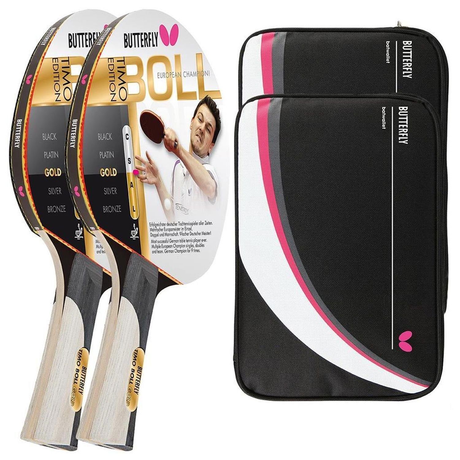 Lieferumfang | Butterfly 2x Timo Boll Gold 85020 Tischtennisschläger + 2x Hülle Drive Case II |