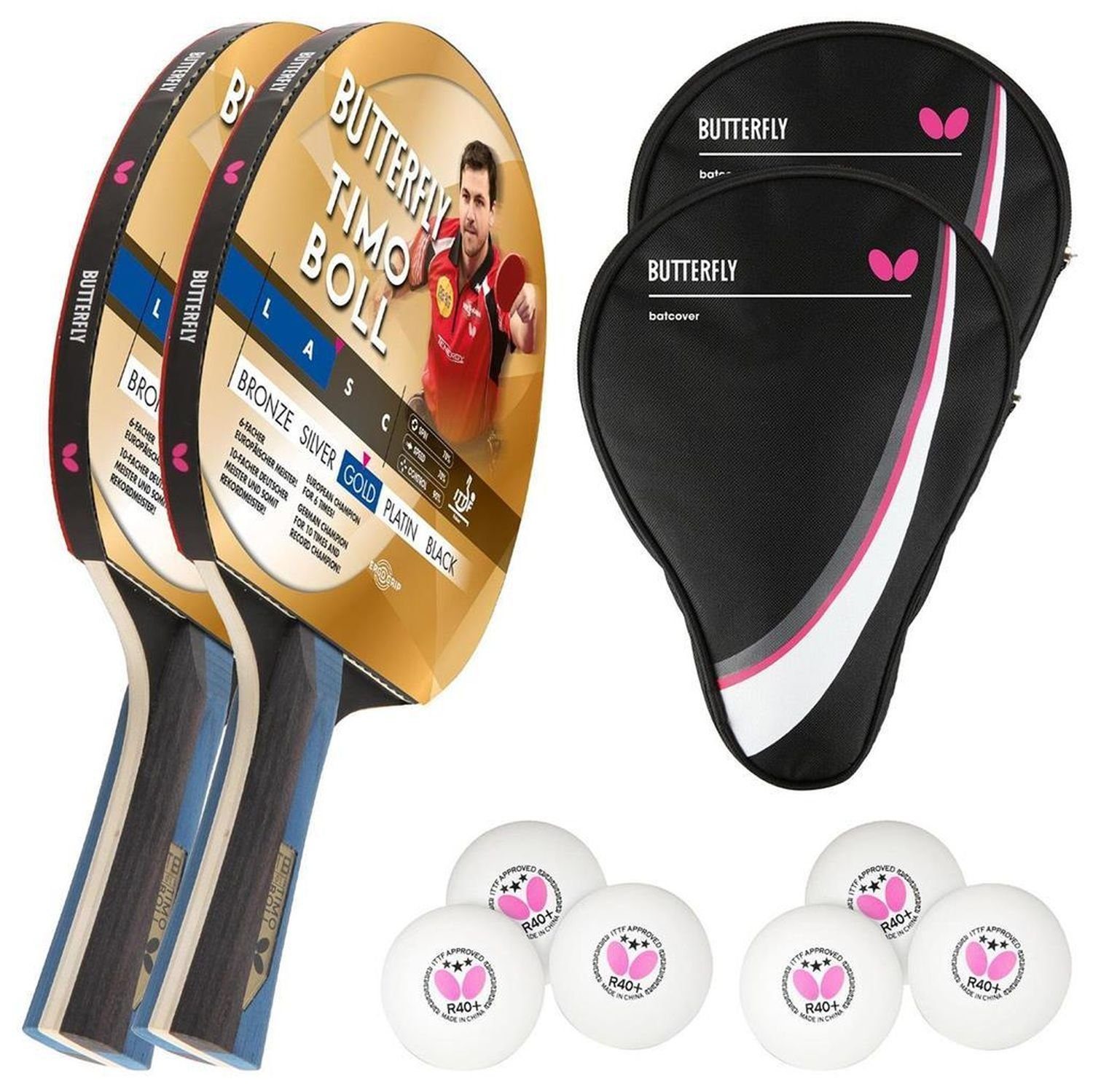 Lieferumfang | Butterfly 2x Timo Boll Gold 85021 Tischtennisschläger + 2x Hülle + 6x TT Bälle |