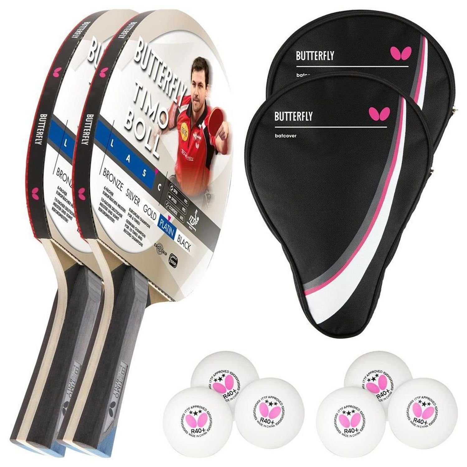 Lieferumfang | Butterfly 2x Timo Boll Platin 85026 Tischtennisschläger + 2x Hülle + 6x Bälle |