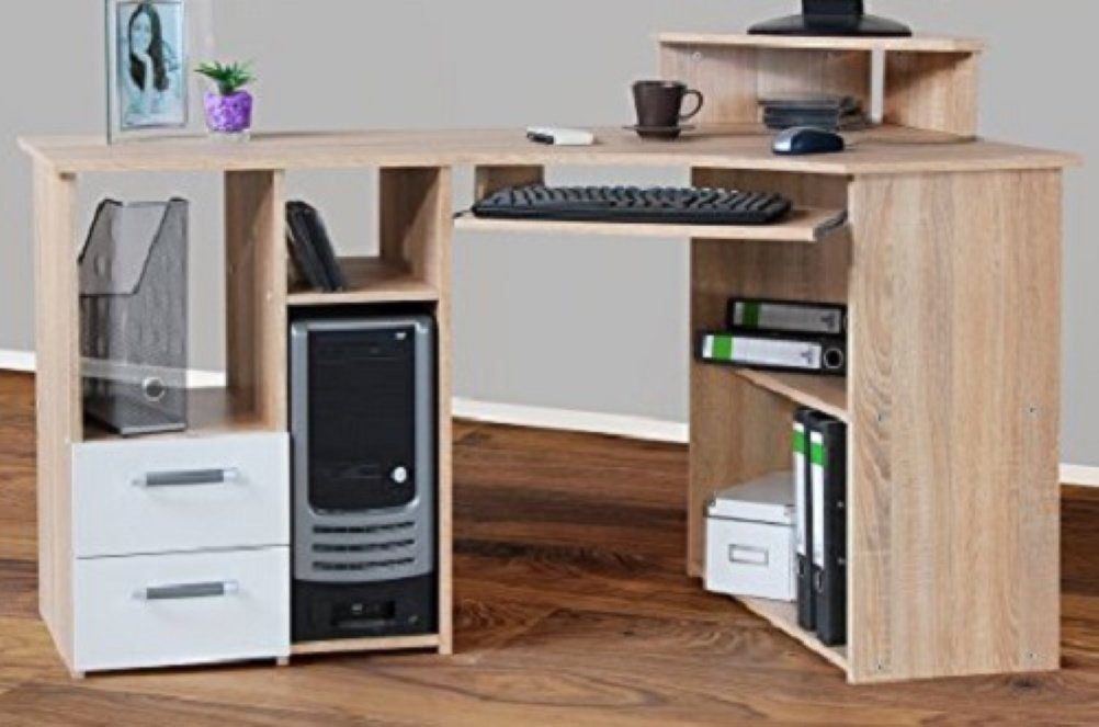 Eck-Schreibtisch - sonoma Eiche sägerau dekor weiss PC-Tisch (1887)