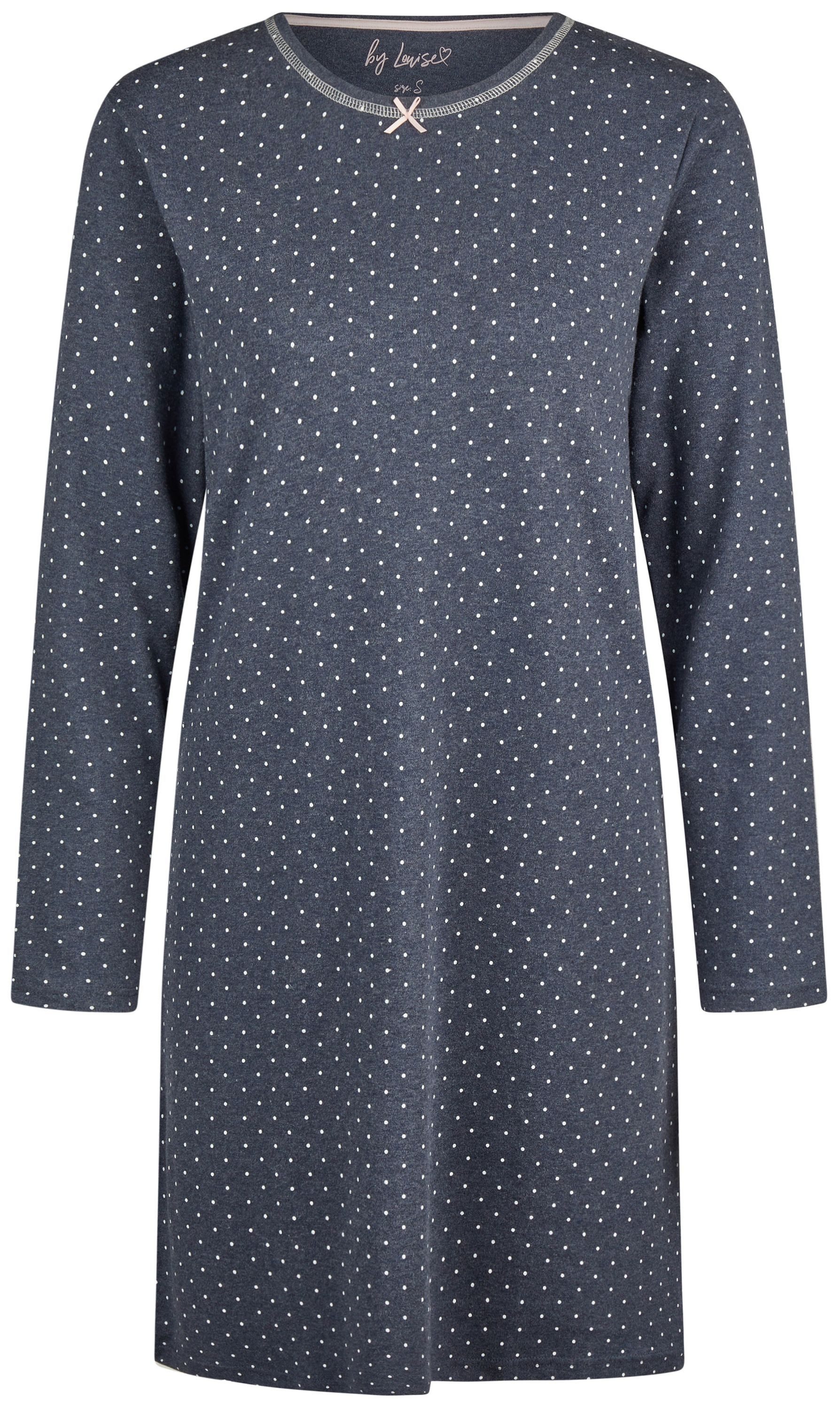 Das Design des Nachthemds wird durch ein Allover-Muster mit zarten Punkten aufgelockert, das dem Kleidungsstück einen modernen und dennoch zeitlosen Look verleiht. Ideal für entspannte Abende und ruhige Nächte, verbindet dieses Nachthemd Funktionalität und Stil auf elegante Weise.