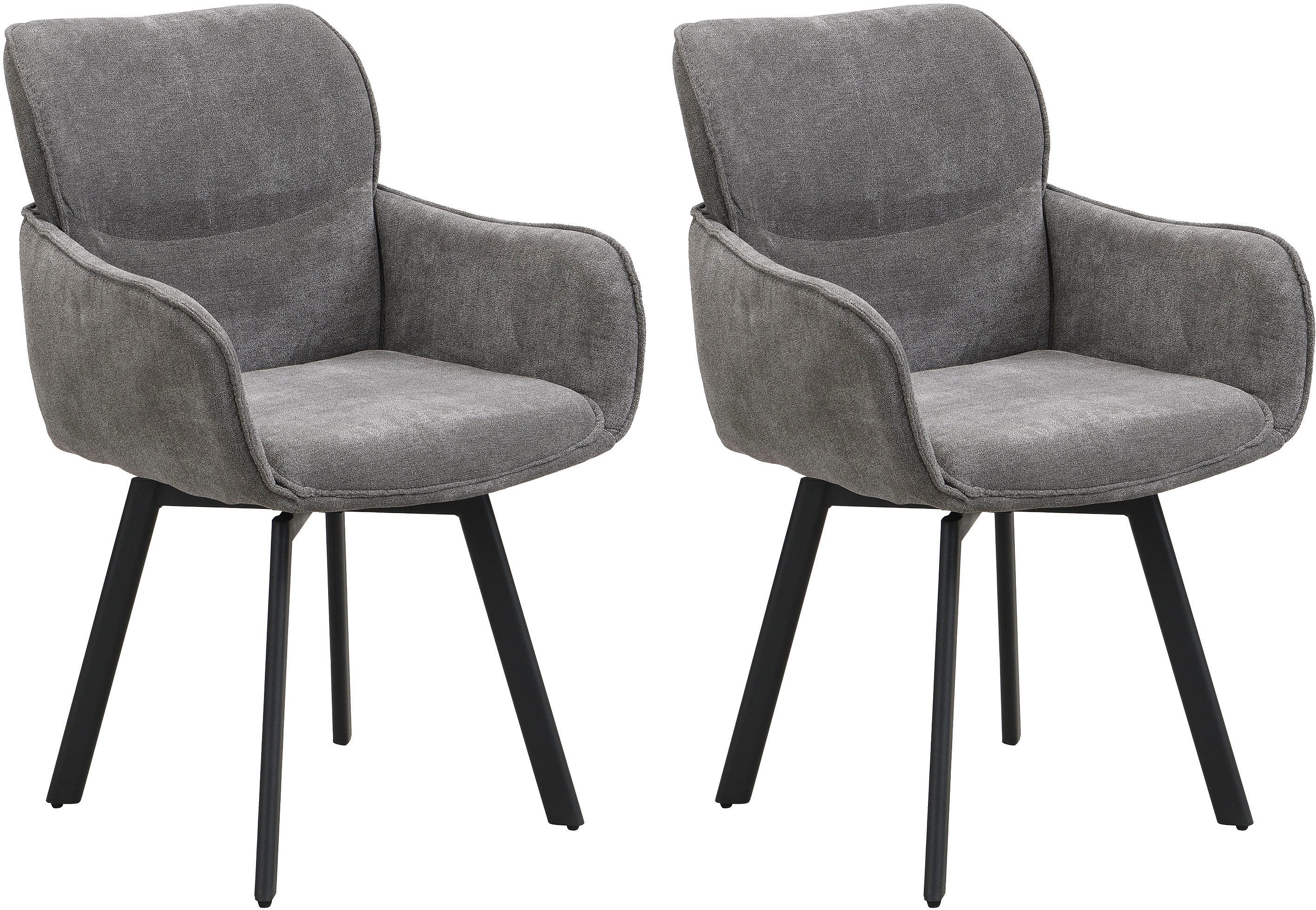 Diese Esszimmerstühle »Rico« von byLIVING sind eine gute Grundlage, um ein gemütliches und stimmungsvolles Ambiente im Essbereich zu kreieren. Ohne den Stuhl anheben und verschieben zu müssen, kann dank der Drehfunktion ganz leicht Platz genommen werden. Praktisch ist das insbesondere in etwas kleineren Räumen. Auch wenn du länger am Tisch sitzt, bleibt er bequem, denn sowohl die Sitzfläche als auch die Rückenlehne sind angenehm gepolstert. Die maximale Belastbarkeit liegt bei einem Gewicht von 110 Kilogramm.
