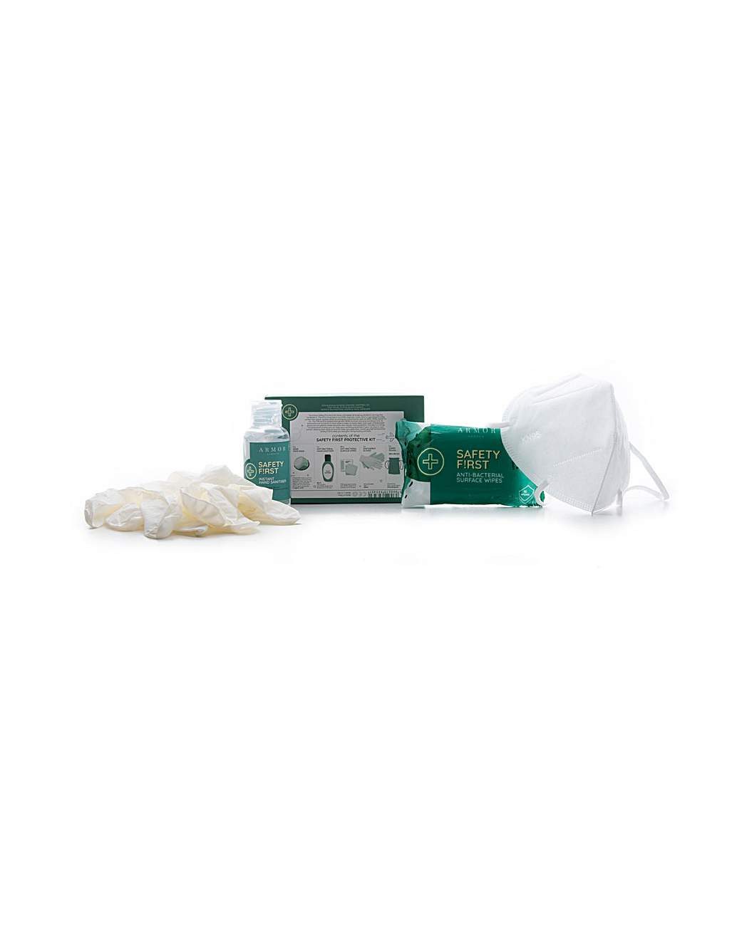 Armor London Safety F!rst Protective K!t Safety Kit 14 Premium-Tücher der Marke Armor London. Dieses Kit enthält: 1 x N95ffp2-Maske 1 x Händedesinfektionsmittel 80 ml 1 x 10 Stück Anti-Bac-Tücher 1 X Handschuhe 1 x Tragetasche