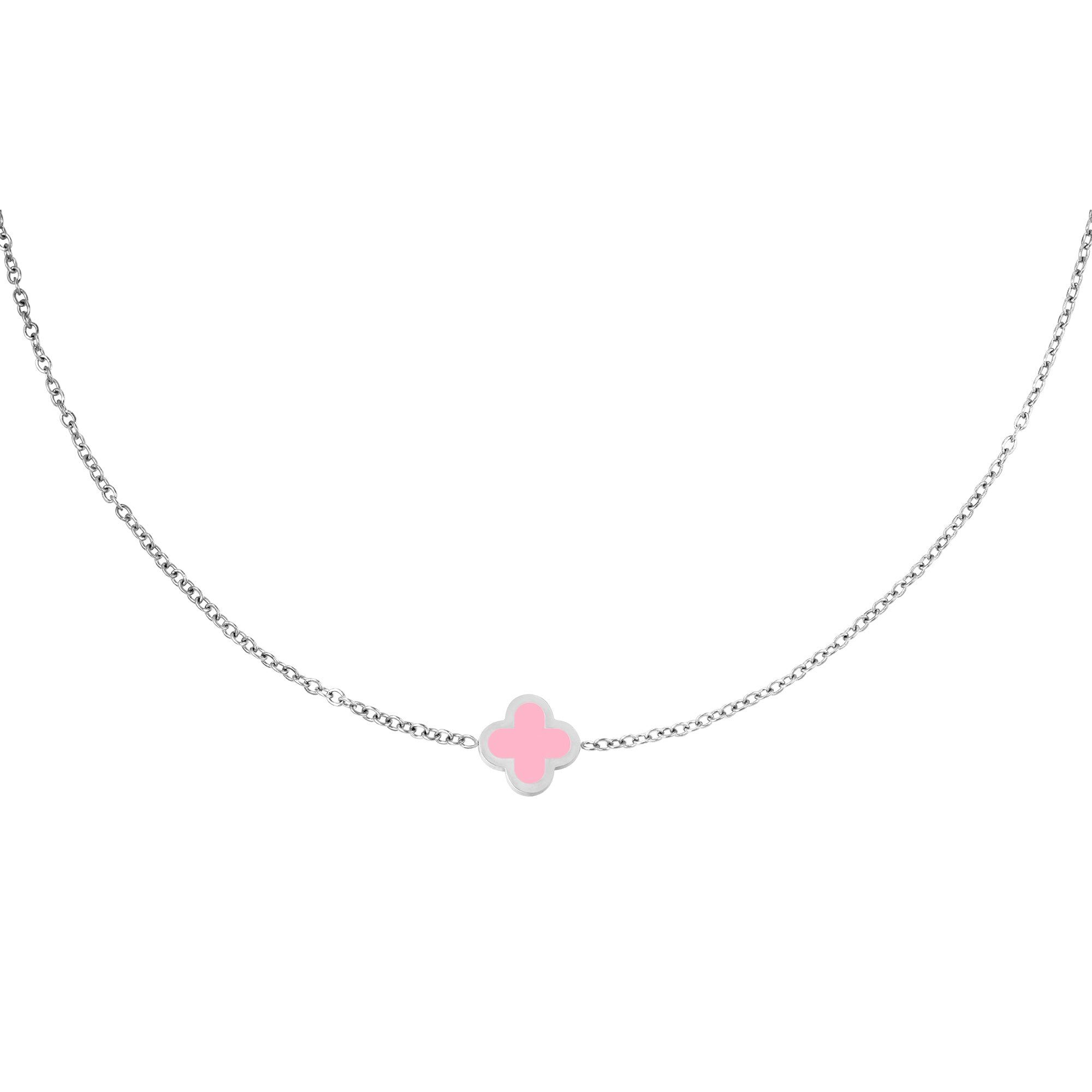 Das vierblättrige Kleeblatt aus Edelstahl und Emaille ist der Farbtupfer für jedes Outfit.