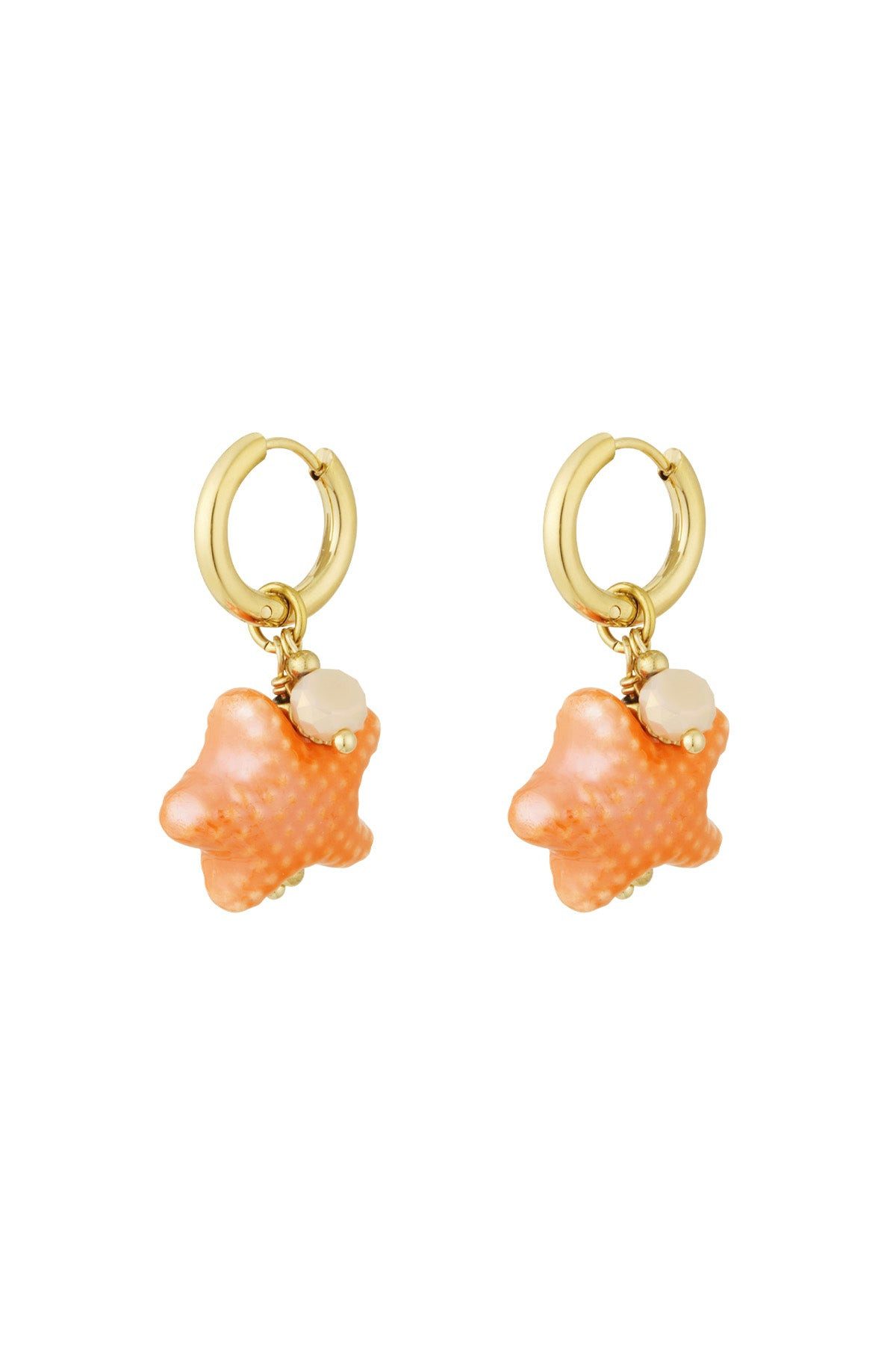 Die Ocean Star Ohrringe bringen das Gefühl von Sonne, Sand und Meeresrauschen direkt an dein Ohr. Die vergoldeten Creolen mit detailverliebten Seestern-Anhängern aus zart gefärbtem Glas vereinen verspieltes Design mit maritimem Charme. Jeder Ohrring ist mit einer kleinen Glasperle akzentuiert – ein funkelnder Farbtupfer, der Urlaubsstimmung garantiert.