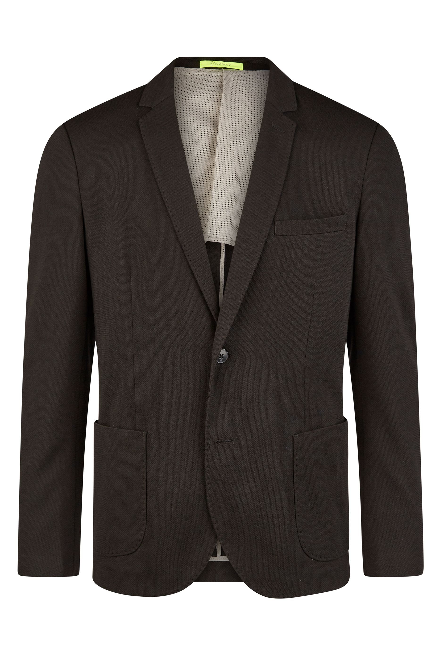 Das modern sportiv designte Calamar Sakko passt sowohl zu Jeans als auch zu Stoffhosen. Daher kannst Du das feine Modell zu jeder Jahreszeit tragen. Das leichte Herrensakko ist aus leicht zu pflegenden Materialien wie Polyester und Baumwolle gefertigt, die zu einer hochwertigen Jerseyqualiät verarbeitet sind. Das für den Beruf und für die Freizeit geeignete Herrensakko hat ein absteigendes Revers, das als Einreiher mit zwei großen runden Knöpfen endet. Insgesamt überzeugt das Calamar Sakko mit einem schlichten Stil, der zeitlos viele Jahre lang getragen werden kann. Zudem hat das Sakko an den Seiten große aufgesetzte Taschen sowie eine Brusttasche für ein Einstecktuch.