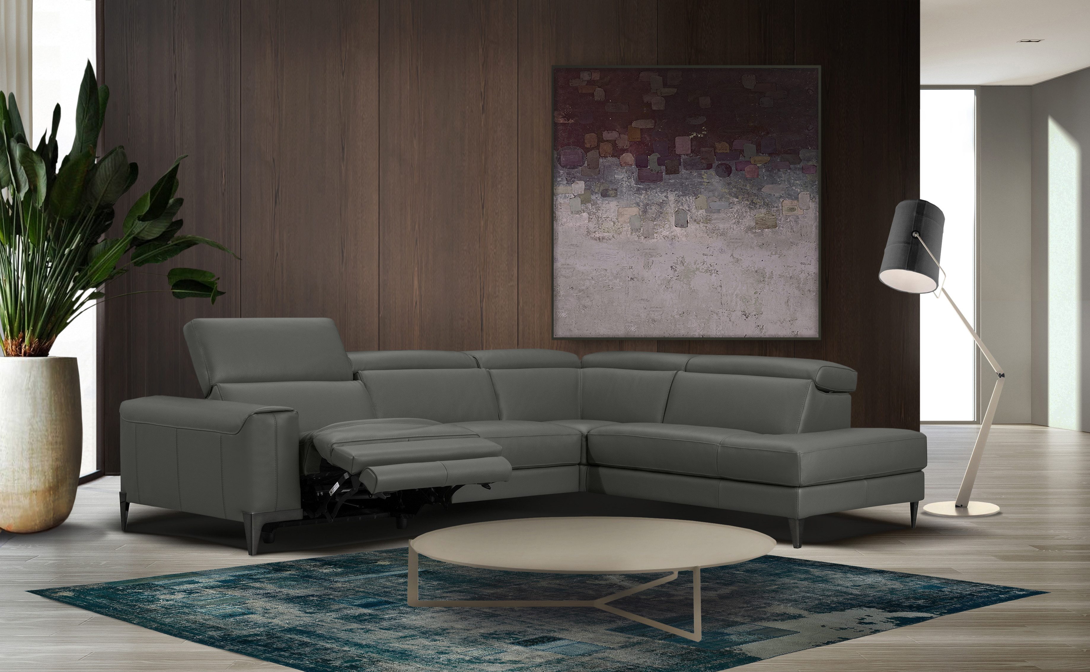 Dieses geräumige Ecksofa »Benja, Designsofa mit erstklassigen Komfortfunktionen zum Wohlfühlen« von CALIA ITALIA ist wie gemacht, um die gesamte Familie oder Freunde für einen Serien-Marathon zu versammeln. Es ist elektrisch verstellbar und lässt sich so per Knopfdruck in die gewünschte Position bringen. Beim Ecksofa befindet sich die Ottomane, von vorne betrachtet, auf der rechten Seite. Der Bezug aus Leder BULL überzeugt mit seiner weichen Oberfläche und einem rustikalen Ausdruck. Aus Liebe zum Detail wurde dieses Modell von Hand angefertigt.