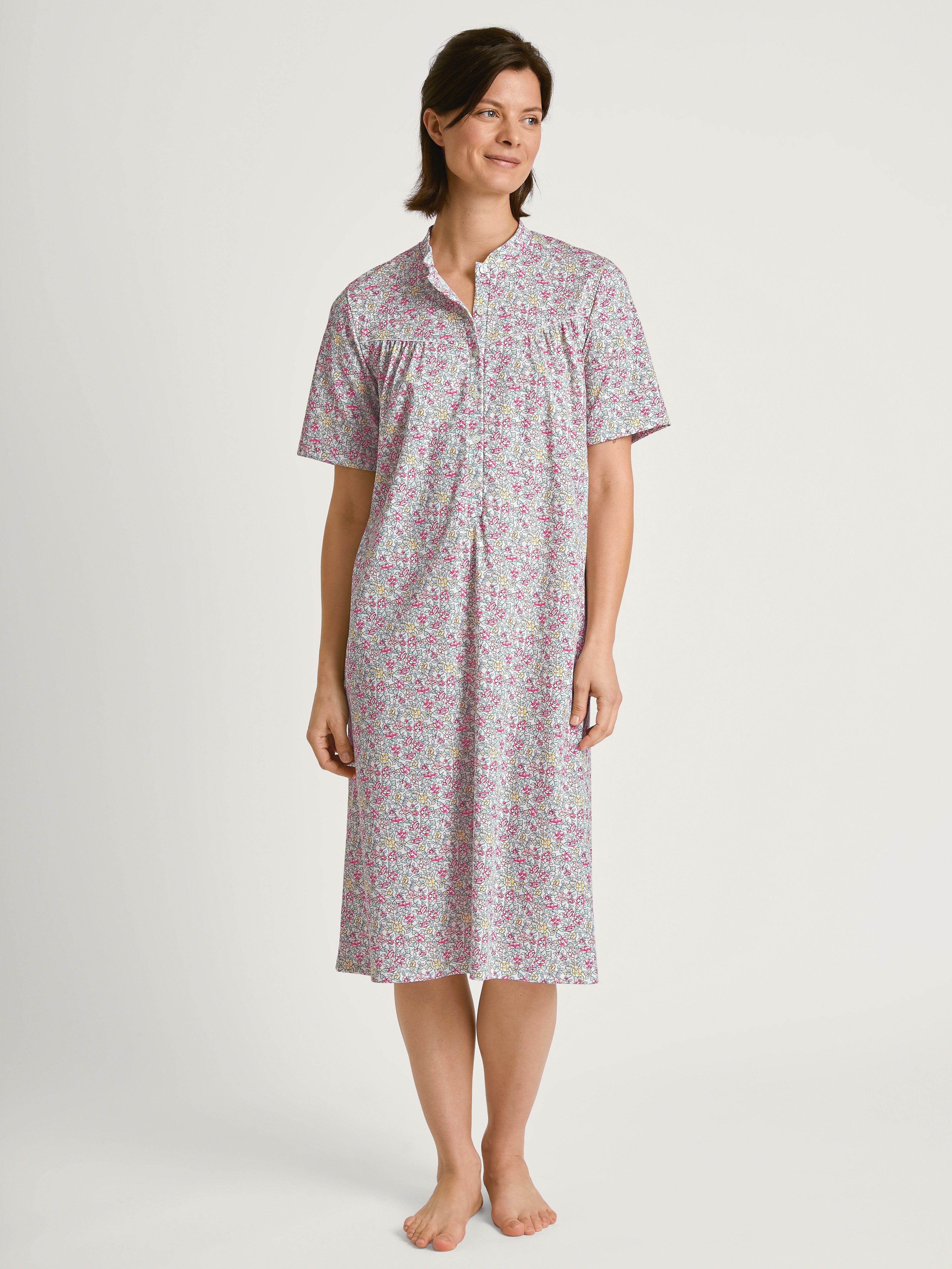 Bist du für gemütliche Tage zuhause gerne klassisch unterwegs, dann schau dir das kniebedeckende Nachthemd »Soft Cotton« von CALIDA genauer an. Der großzügige Schnitt schmeichelt jeder Figur. Der Stehkragen bringt sportliche Eleganz ins Outfit.