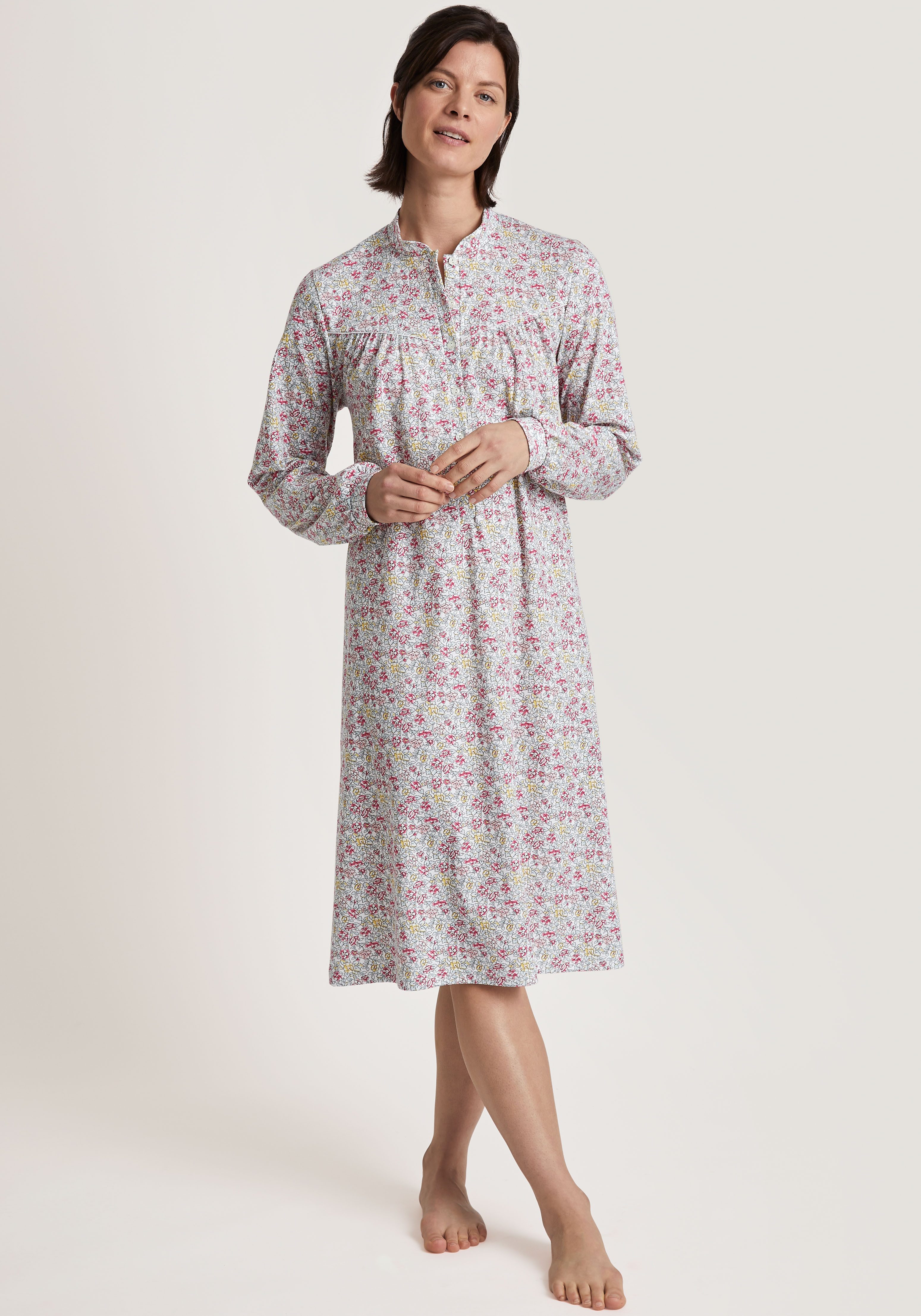 Mit dem kniebedeckenden Nachthemd »Soft Cotton« von CALIDA bist du für gemütliche Tage zuhause klassisch unterwegs. Der großzügige Schnitt schmeichelt jeder Figur. Der Stehkragen .