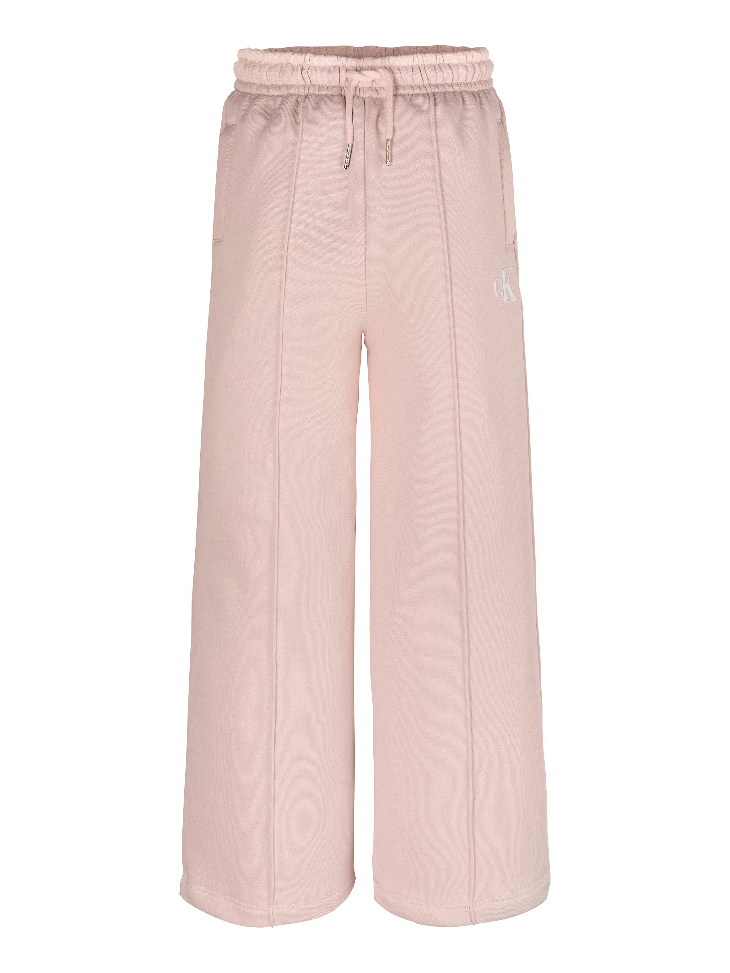 Die Sweathose »CK LOGO WIDE LEG SWEATPANTS« von Calvin Klein Jeans bietet viele Kombinationsmöglichkeiten für Freizeit-Looks. Ein angesagtes Detail sind der abgesteppte Beinabschluss sowie die schmal abgesteppten Falten. Die gerade Form der Mädchen-Hose engt dank des geraden Schnitts nicht ein.